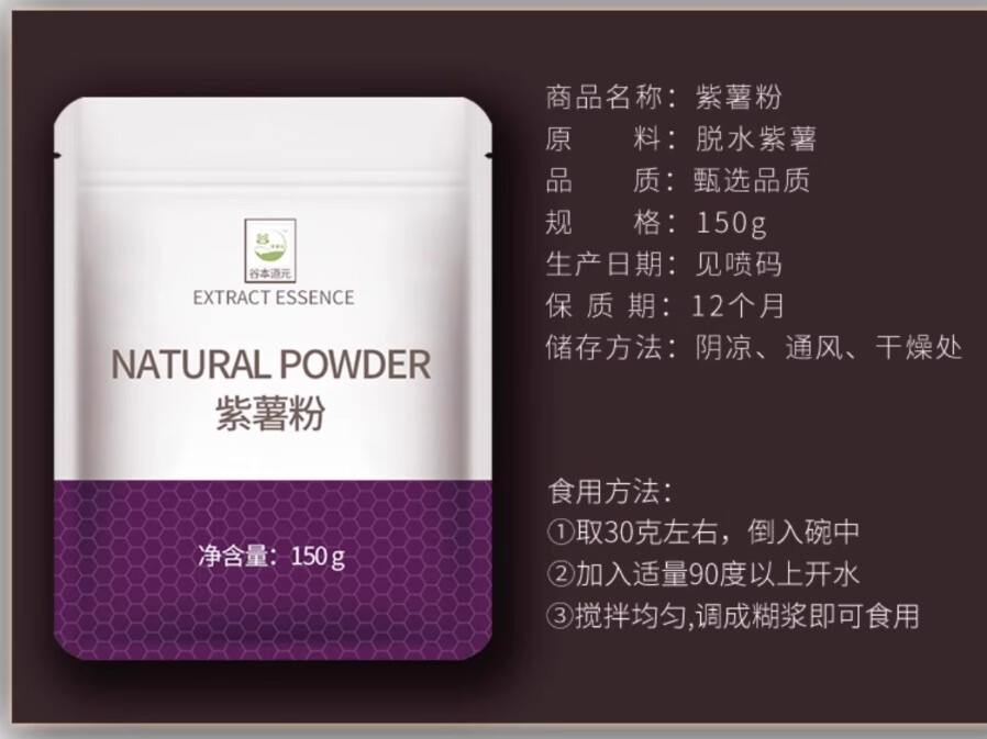 Tanimoto Daoyuan purple potato powder 150g baking household natural raw materials color taro bread steamed buns fruit powder fruit and vegetable powder meal replacement