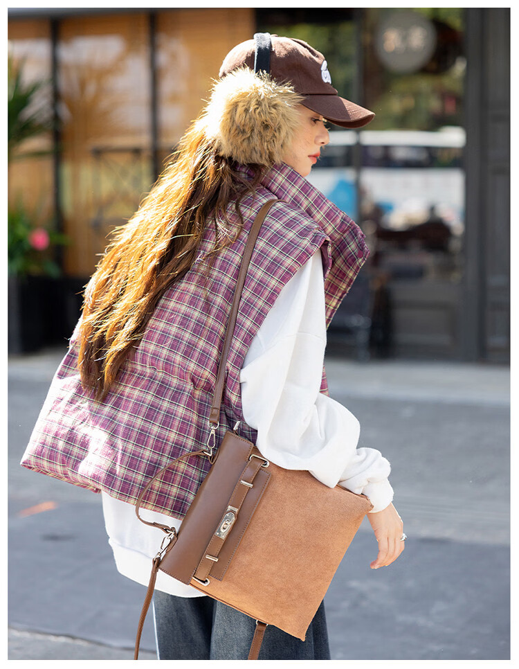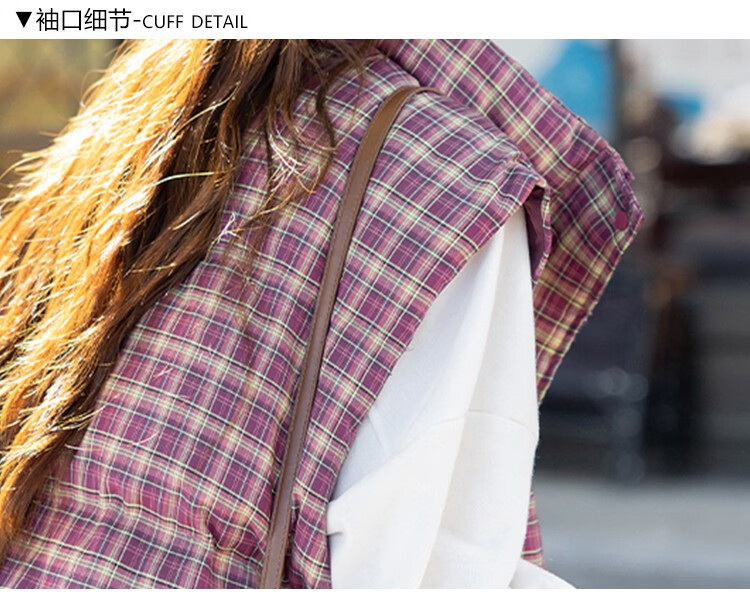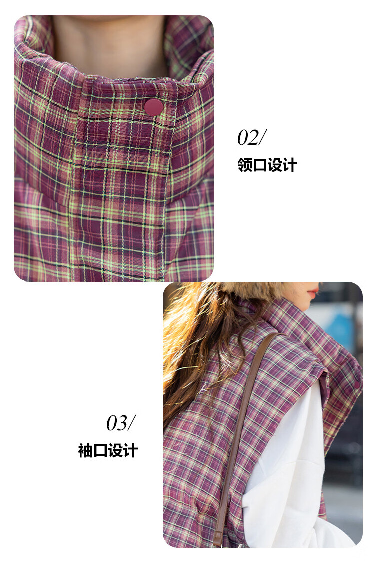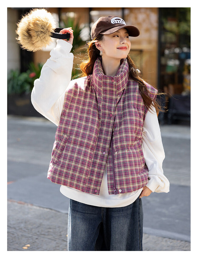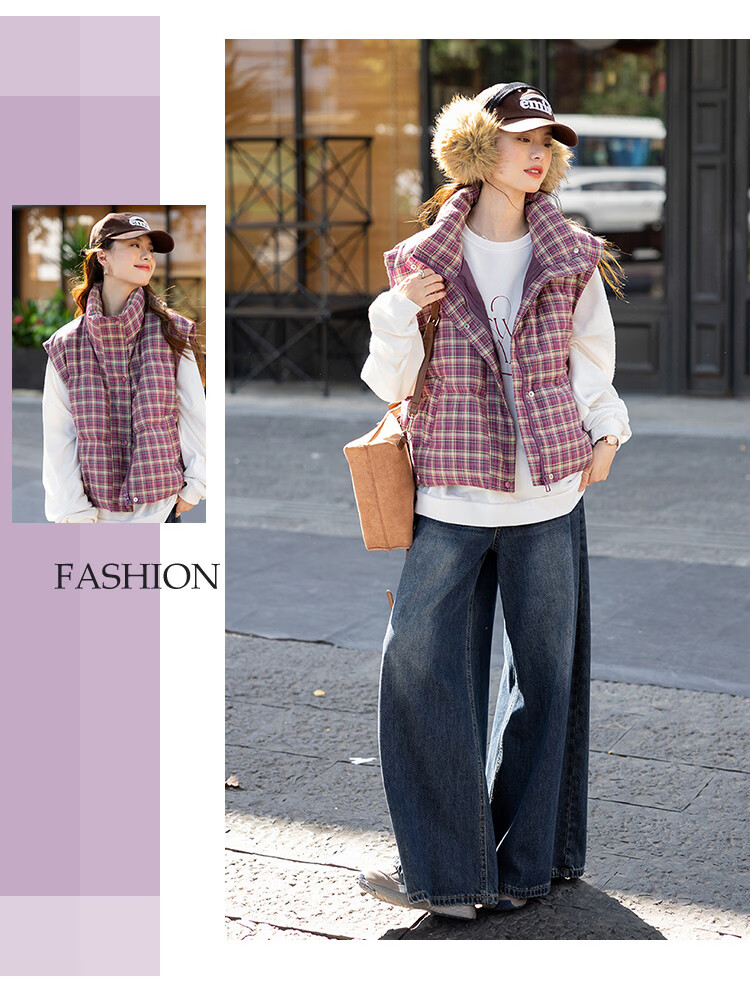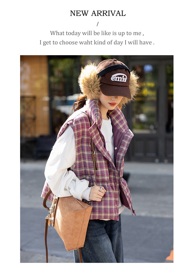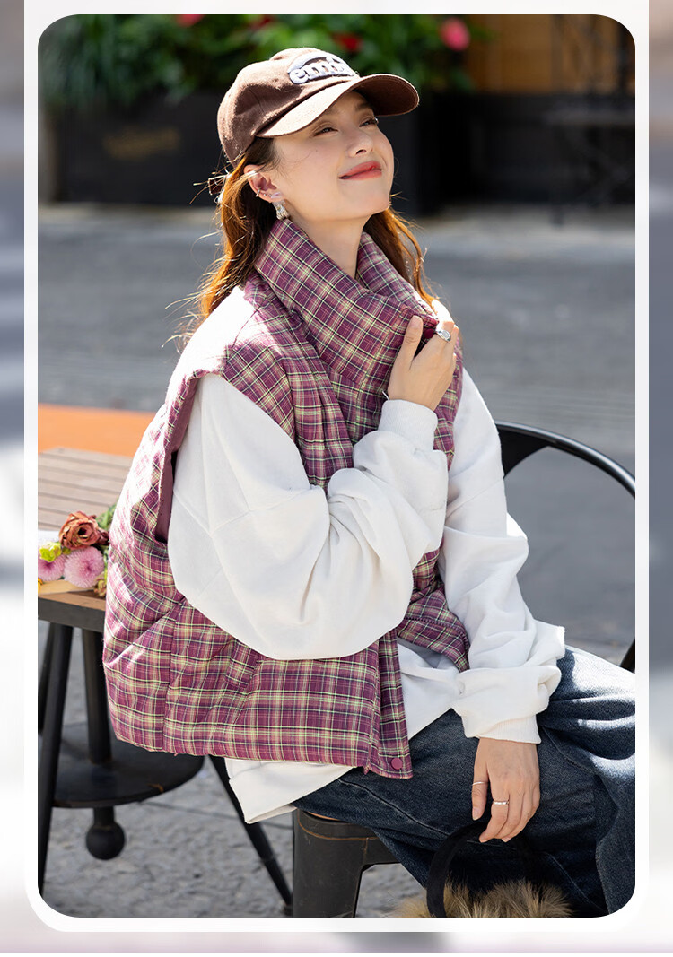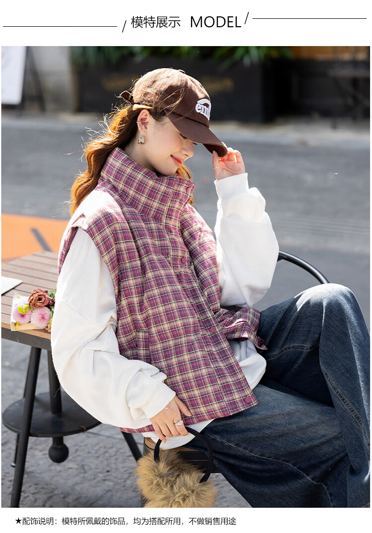 Ives (ITISF4) fashionable versatile stacked vest retro plaid down vest 90 white duck down jacket pink plaid S