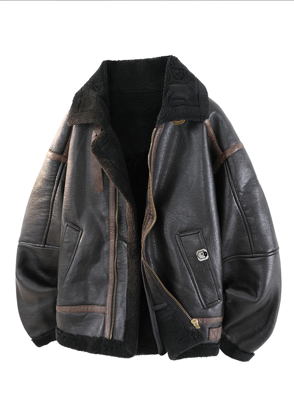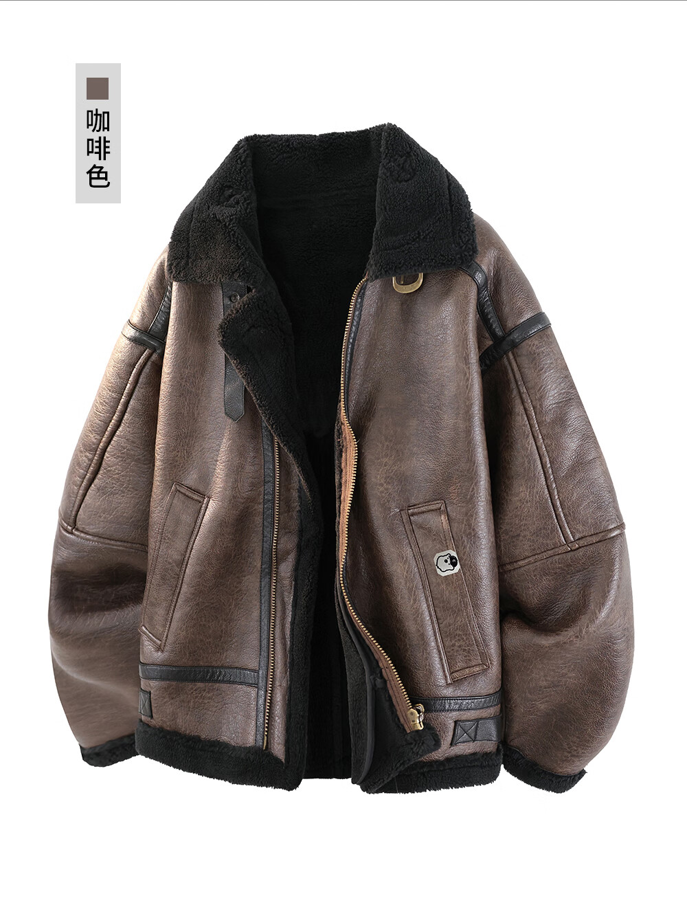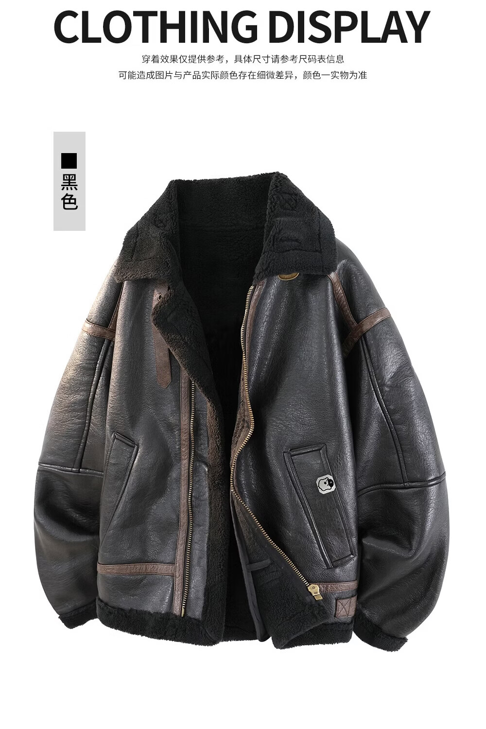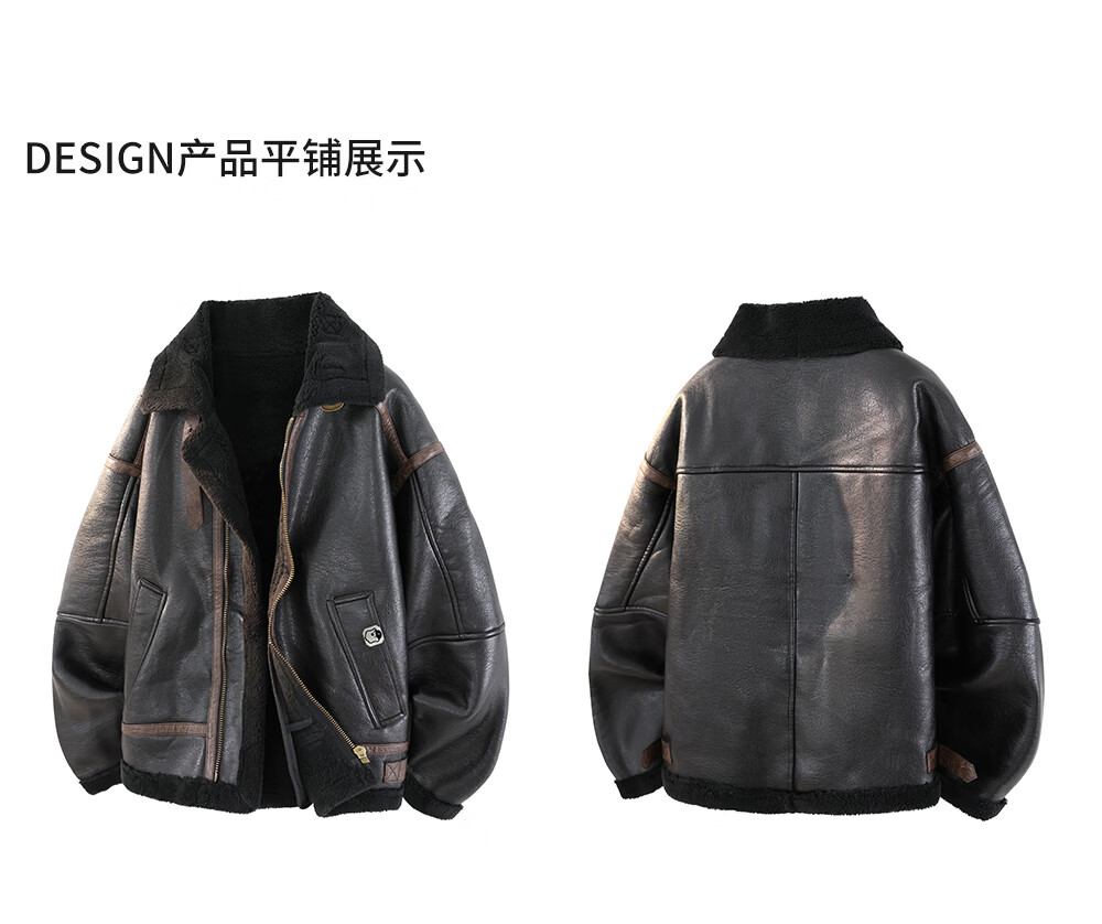CHOCOOLATEit lamb fur jacket men's patchwork plus velvet thickened warm stand-up collar cotton jacket black M