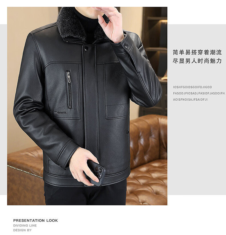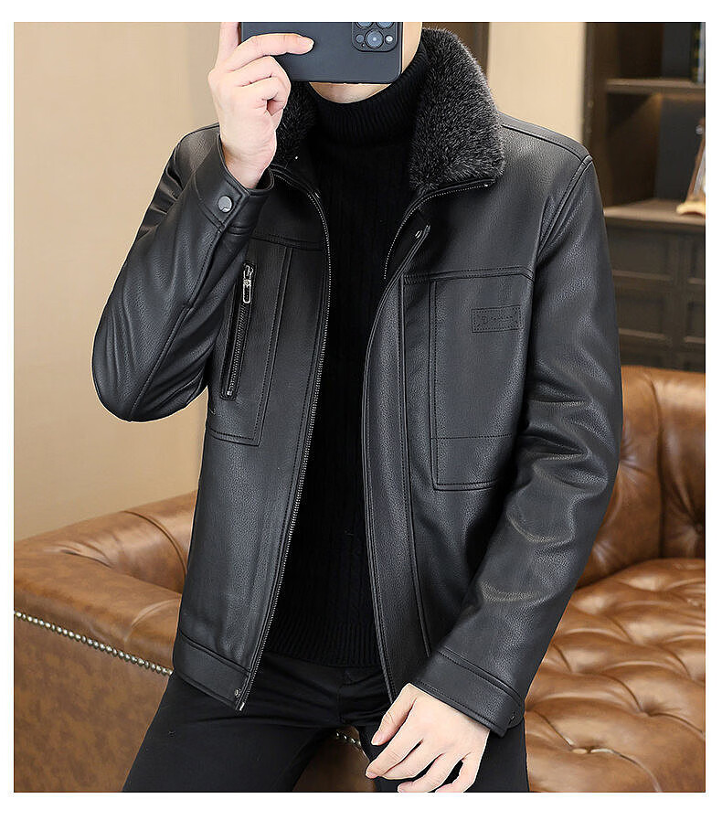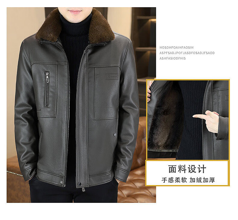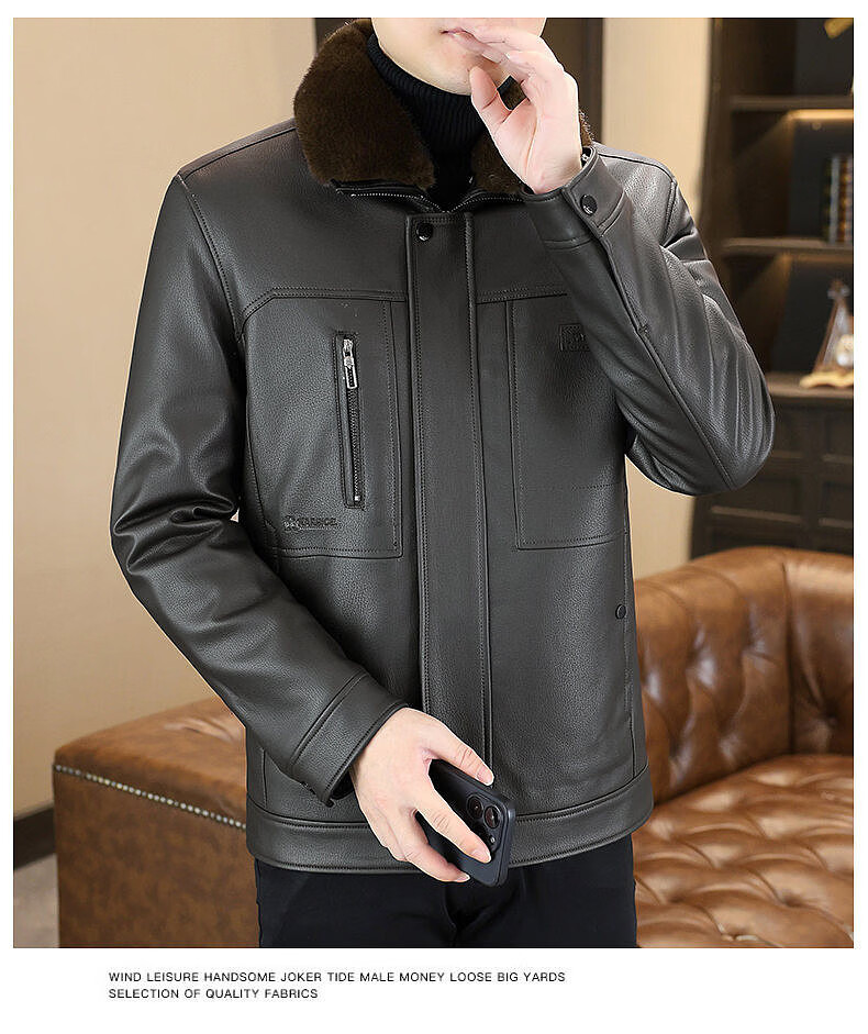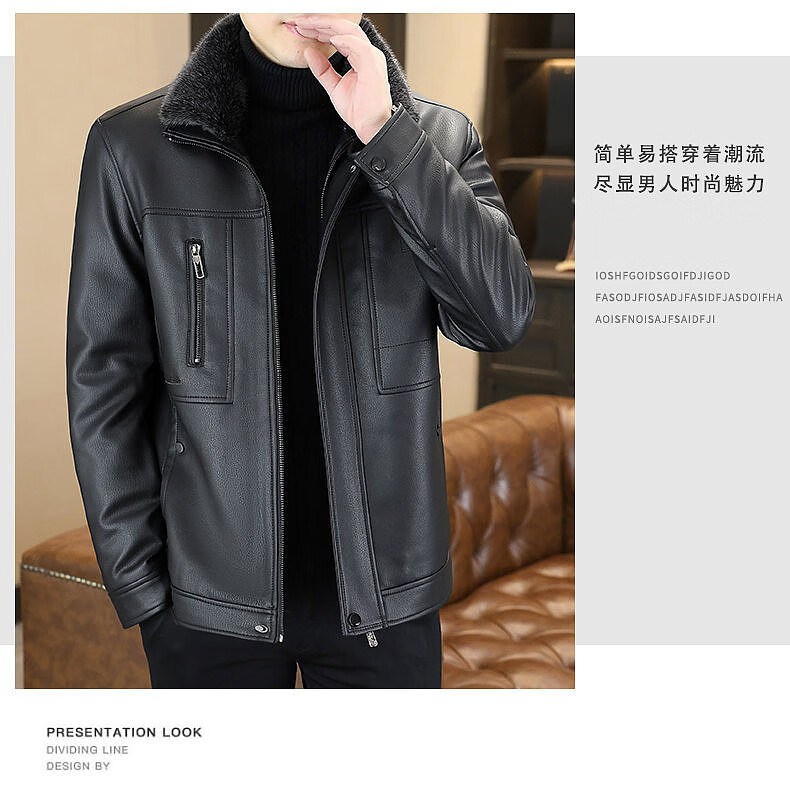 Yalu removable fur collar winter clothing fashionable new leather jacket plus velvet thickened jacket men's dad's leather jacket cotton clothes