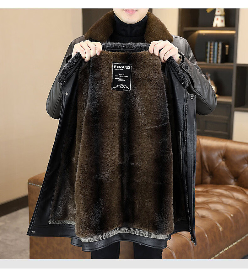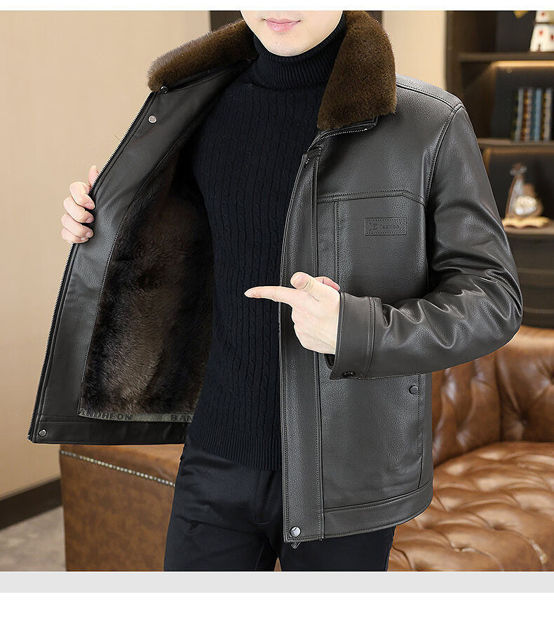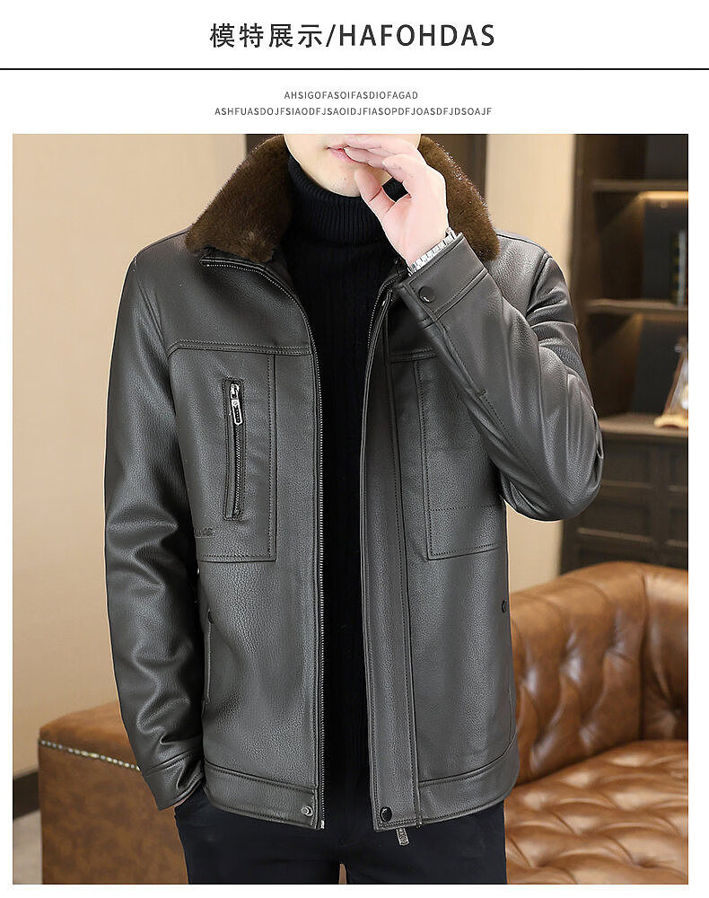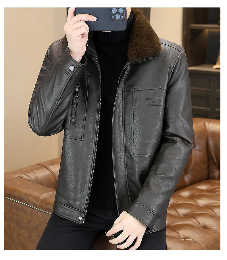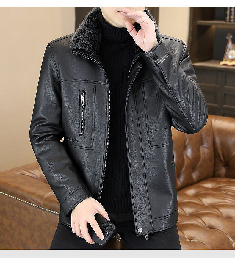 Yalu removable fur collar winter clothing fashionable new leather jacket plus velvet thickened jacket men's dad's leather jacket cotton clothes