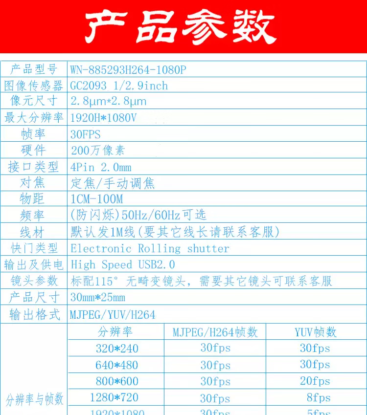 Weiyiyou USB driver-free 2 million pixel 1080P wide dynamic HD camera module module H264 face recognition wide dynamic outdoor recommended with 1 meter cable 2