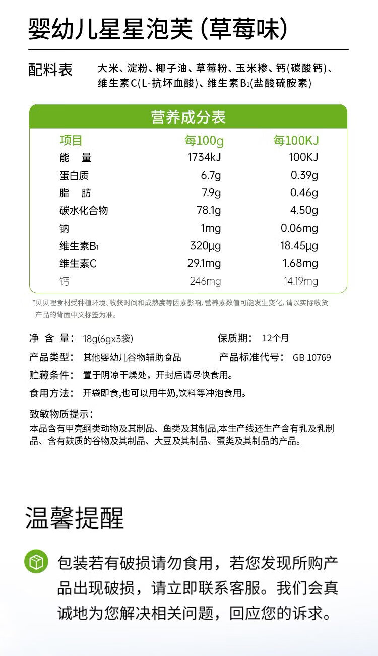 Beibeili baby snacks trial pack 18g