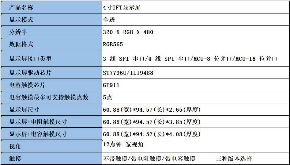 Weiyiyou 4-inch TFT LCD screen ILI9488ST7796 display 3-wire 4-wire serial port 8-bit 16-bit 3.95-inch LCD9488 without touch