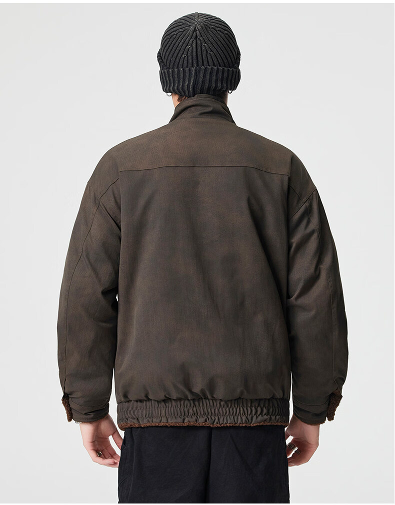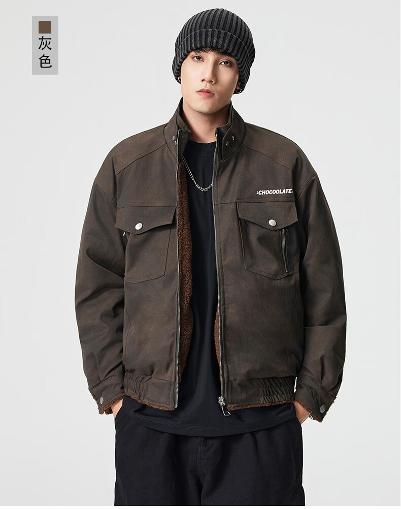 CHOCOOLATEit American motorcycle leather jacket men's autumn new tie-dye retro jacket men's gray L