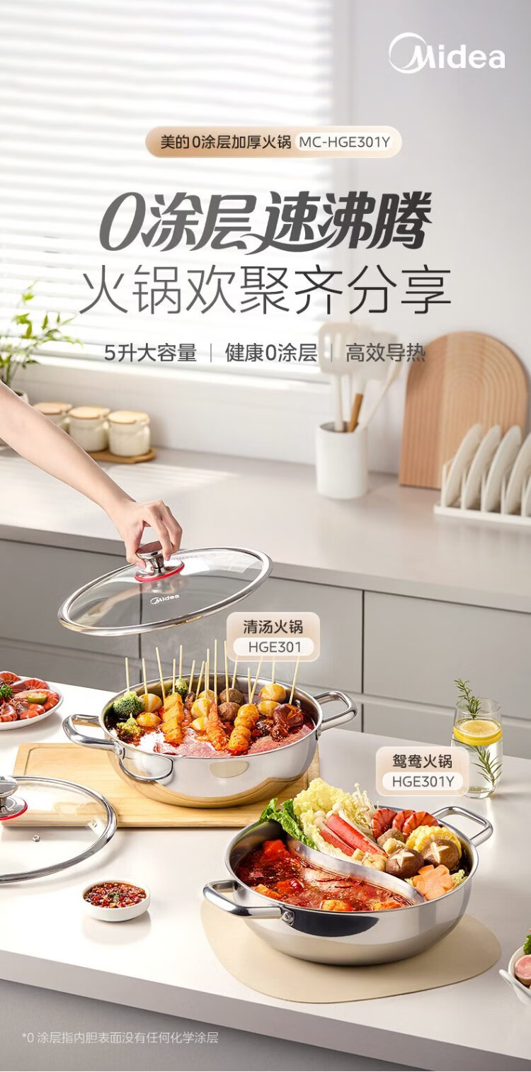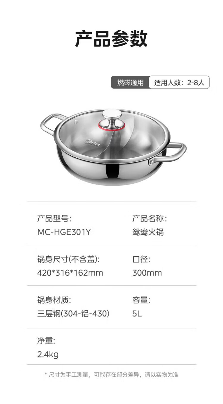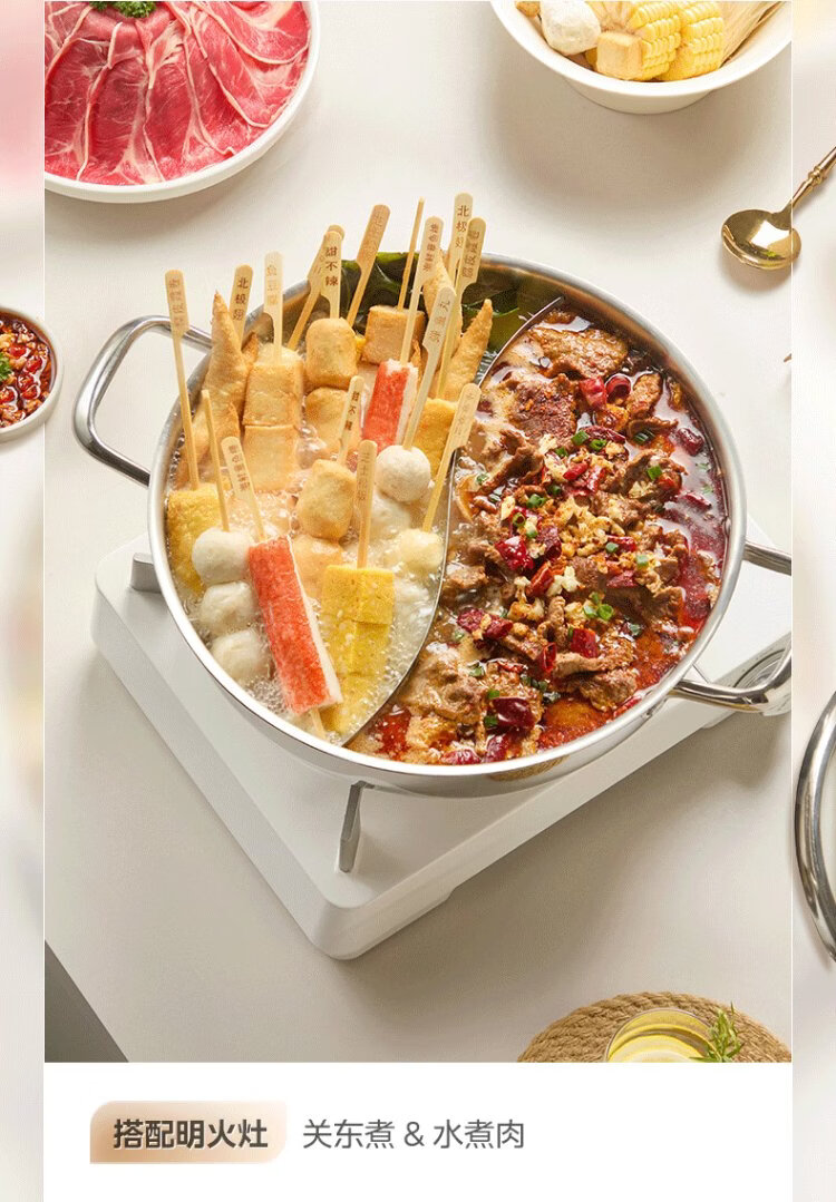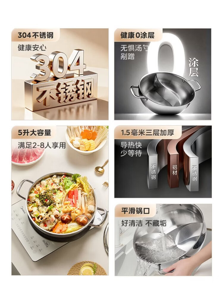 Midea Yuanyang Pot 304 stainless steel thickened small hot pot household multi-functional soup pot gas stove induction cooker