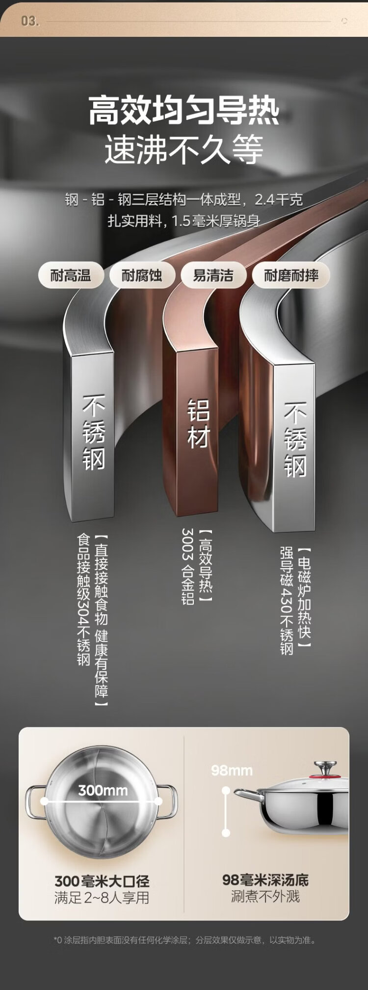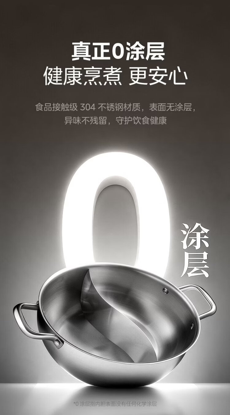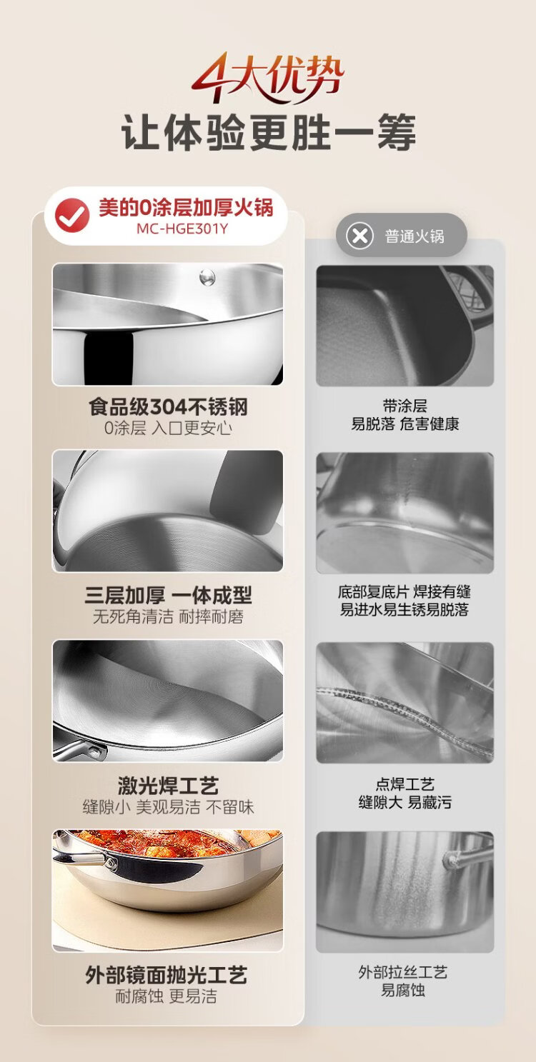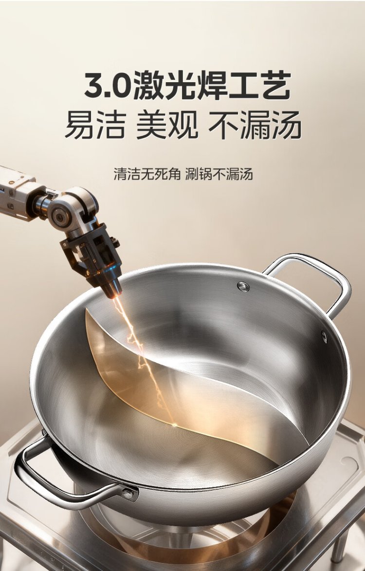 Midea Yuanyang Pot 304 stainless steel thickened small hot pot household multi-functional soup pot gas stove induction cooker