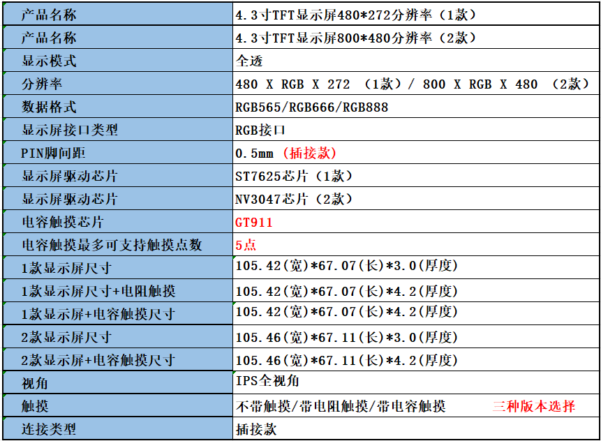Weiyiyou 4.3-inch TFT LCD screen 480*272RGB display IPSESP32-S3 capacitive touch 800*480LCD with resistive touch IPS300 brightness 4802