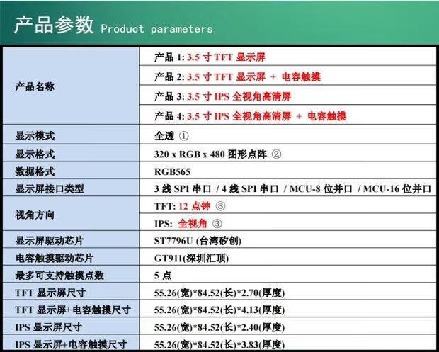 Weiyiyou 3.5-inch TFT LCD screen IPS full-view display ST7796 capacitive screen 8-bit 16 parallel port MCU screen SPI