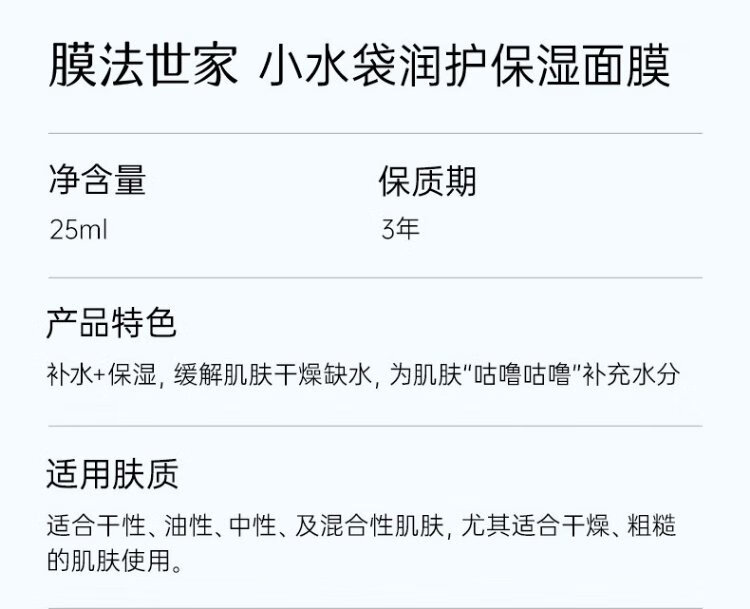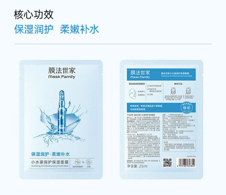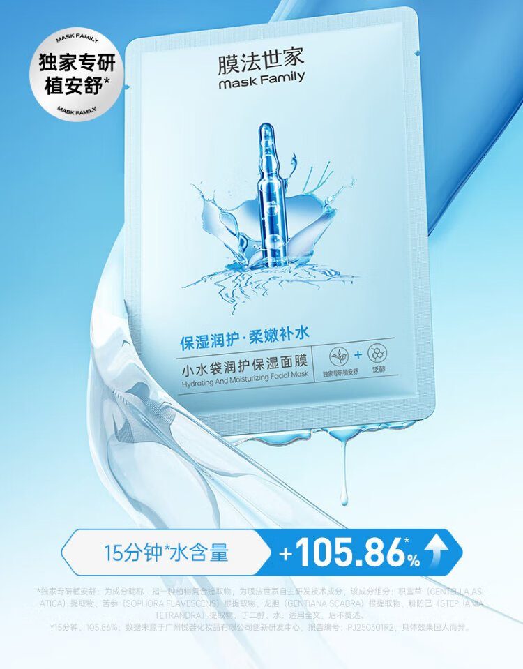 Membrane Fa Shijia small water bag hydrating mask 60 pieces, intensive hydration, locking in water, soothing and repairing the skin, essential for dryness after changing seasons.