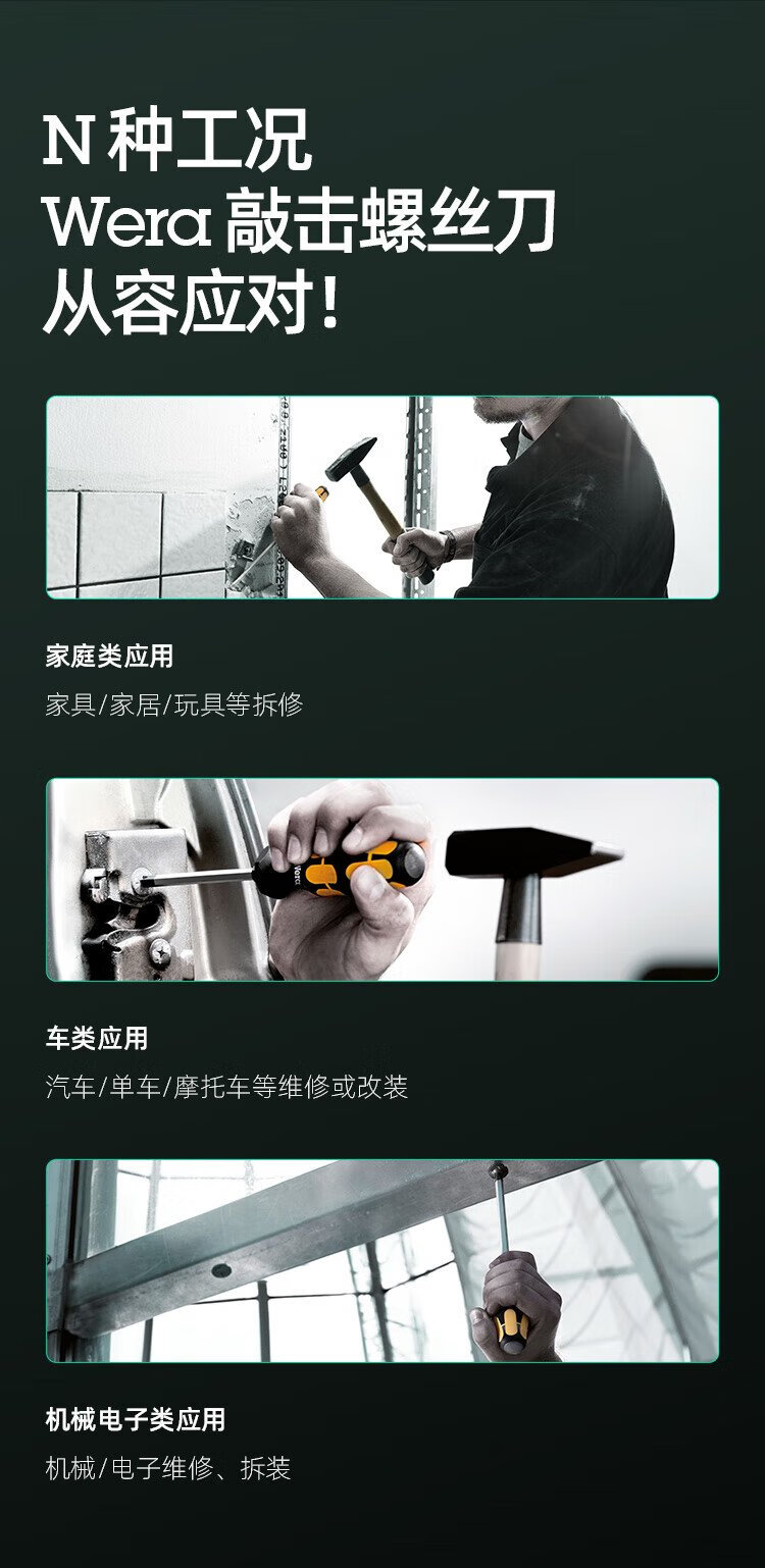 WERA imported impact screwdriver 932 one-word 917 cross German one-piece tool bar can knock flat mouth screwdriver industrial grade one-word 1.2x7x125 05018266001