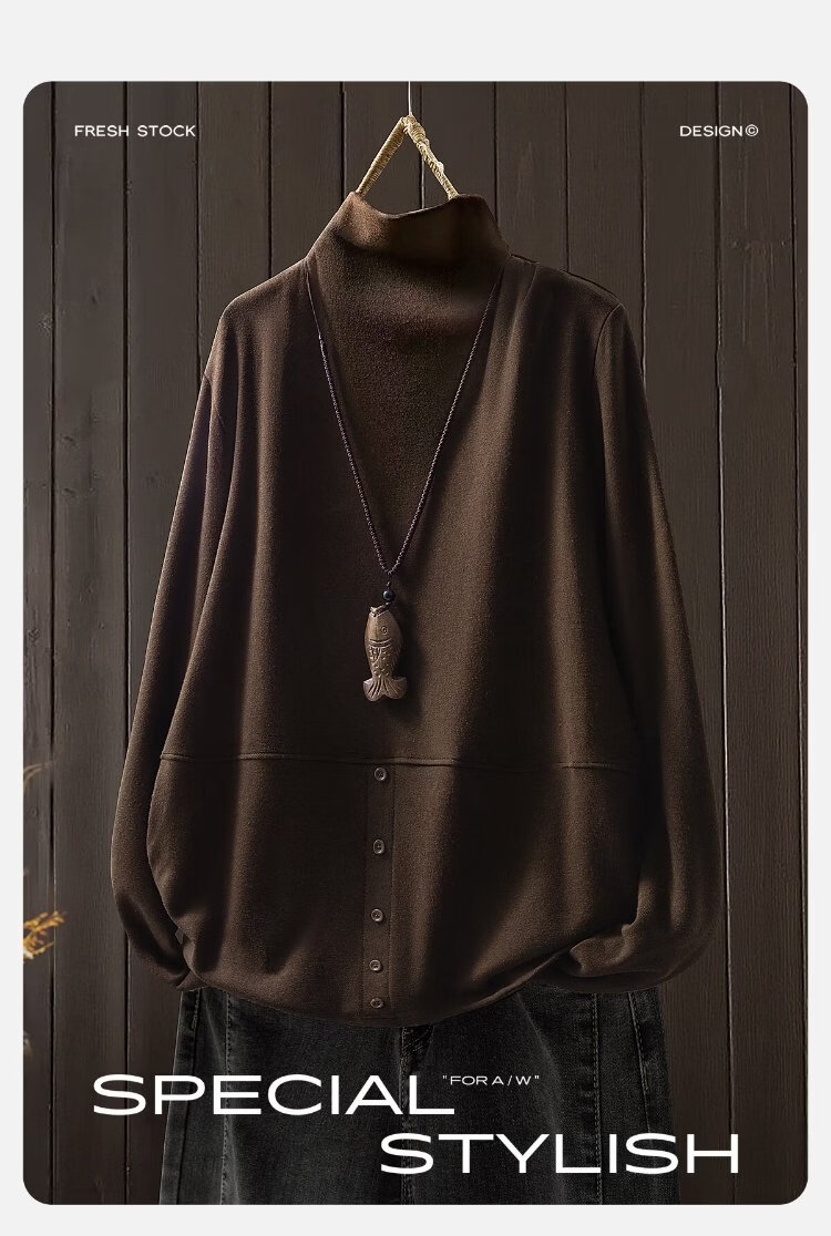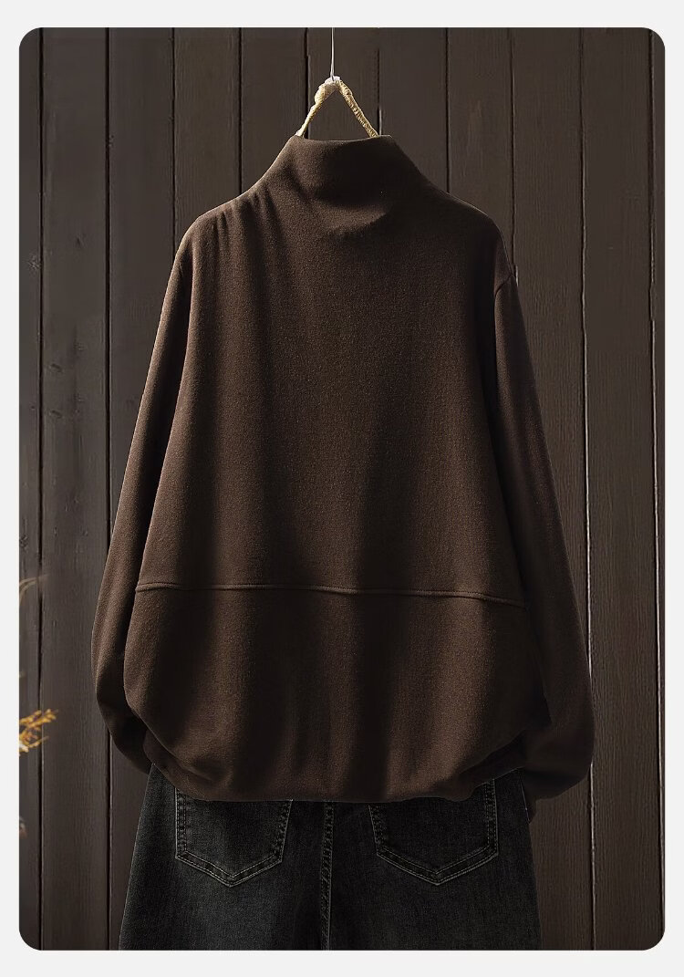 Cypress half-high collar solid color brushed bottoming shirt for women 2025 winter new design loose casual top