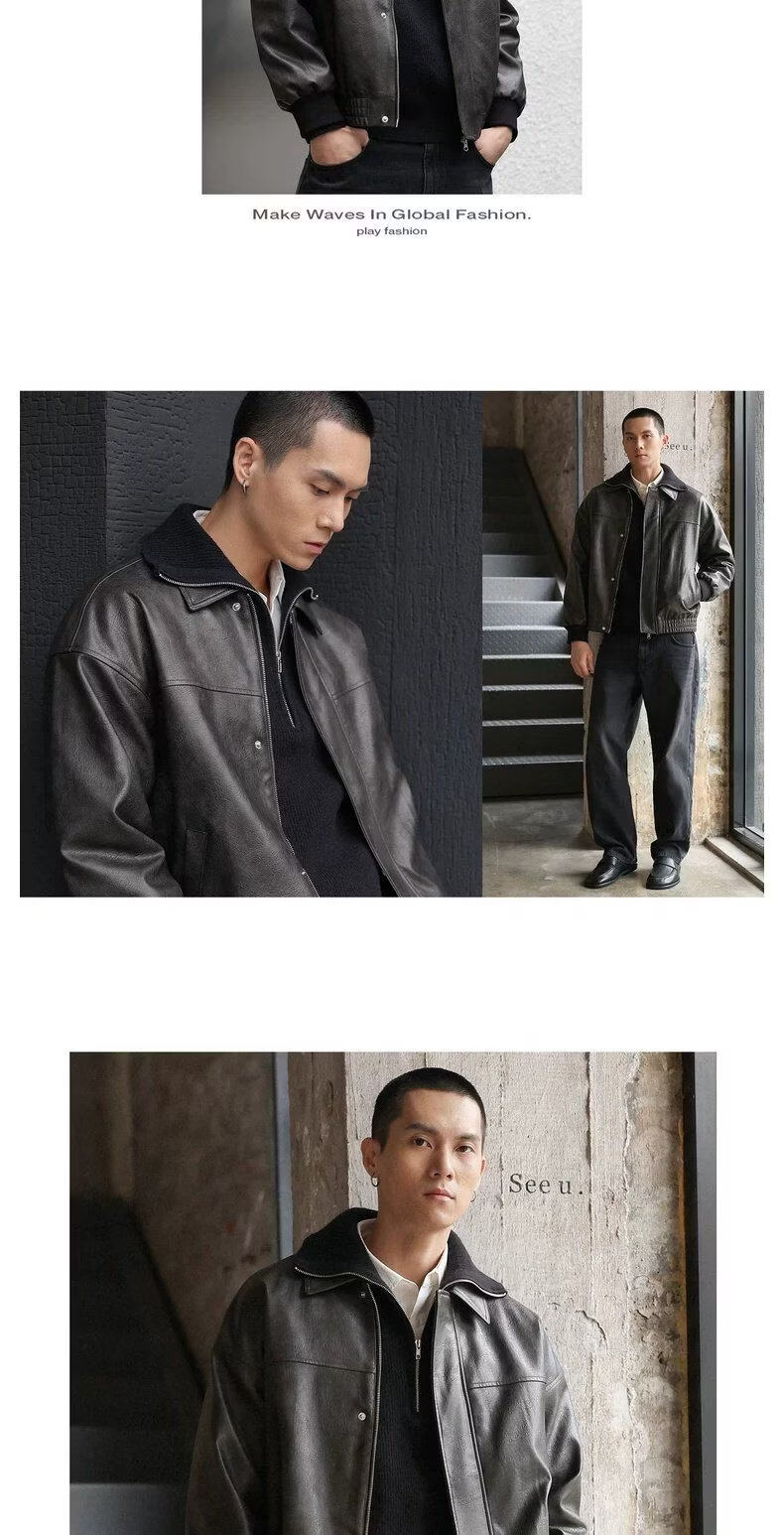 UR2026 Spring New Men's Trendy Retro PU Three-dimensional Letter Jacket UUV160002