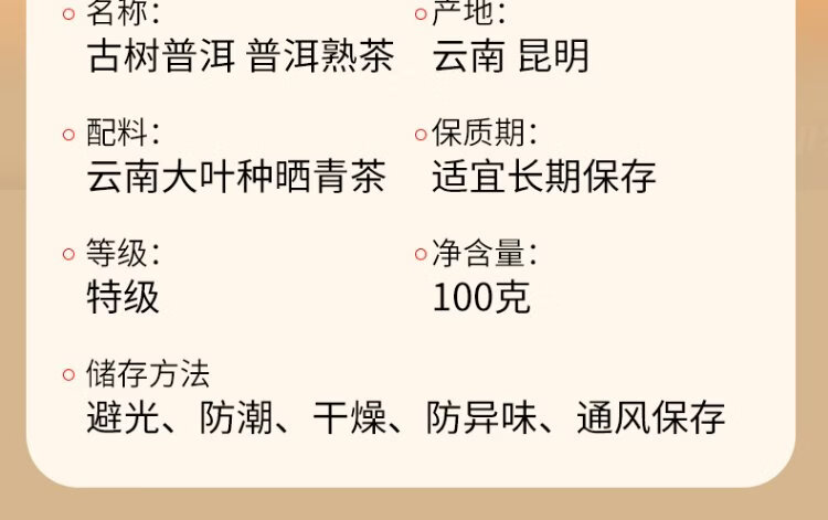 Royal Tea Tianci Tea Pu'er Tea Ripe Tea Ten Years Yunnan Menghai Palace Golden Bud Ancient Tree Tea Ripe Pu'er Loose Tea Ration Tea 100g
