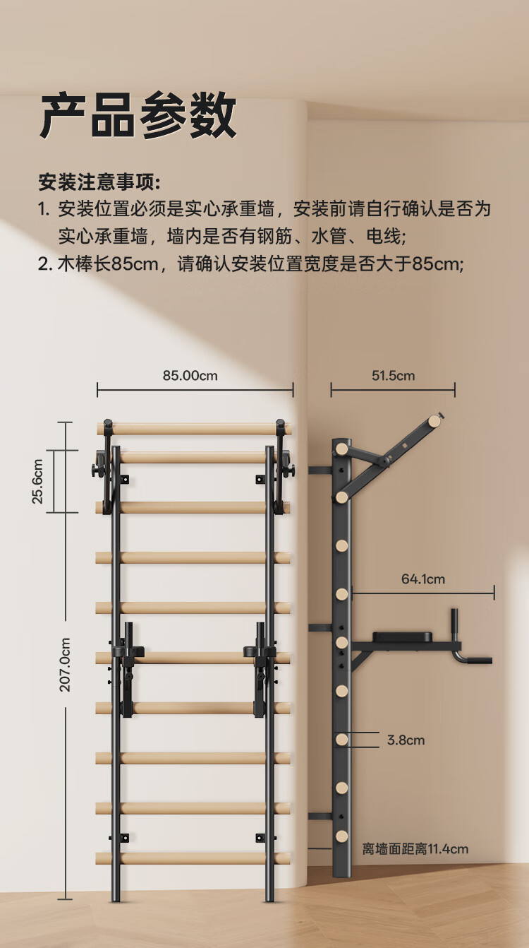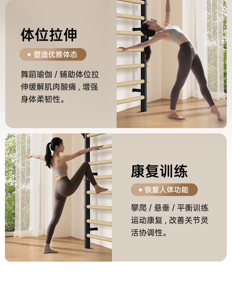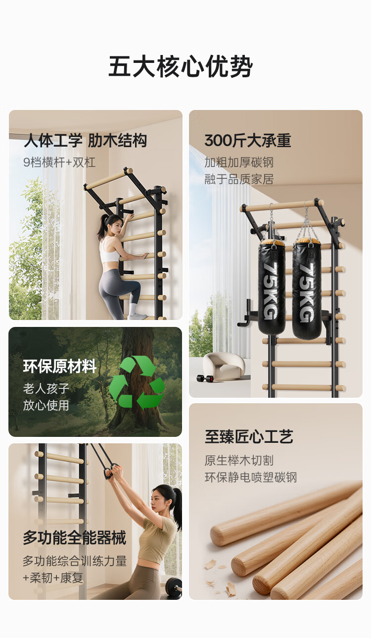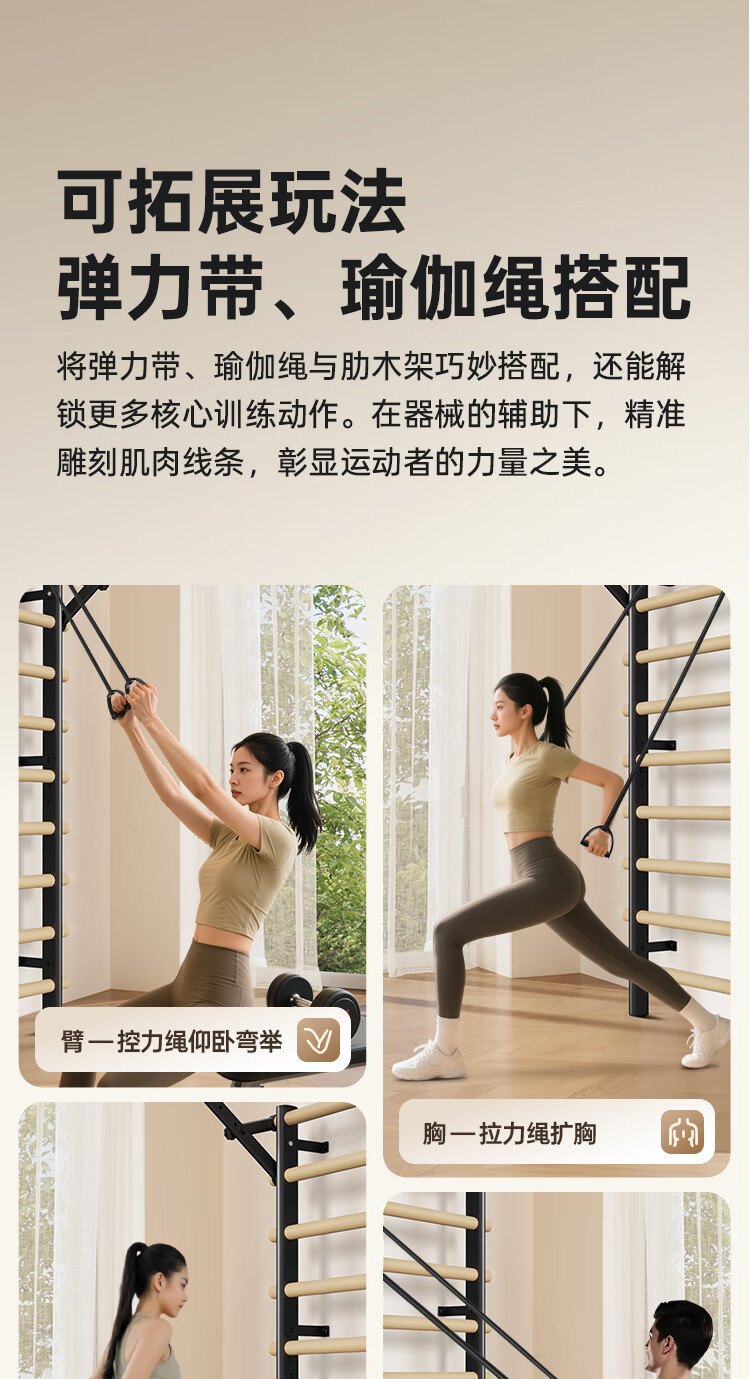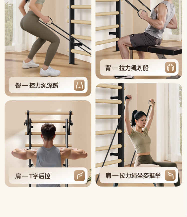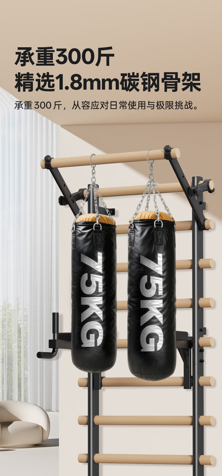 JOROTO ribbed wooden frame pull-up device horizontal bar household multi-functional rehabilitation leg press and stretch frame thickened steel tube YT30