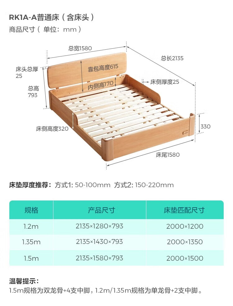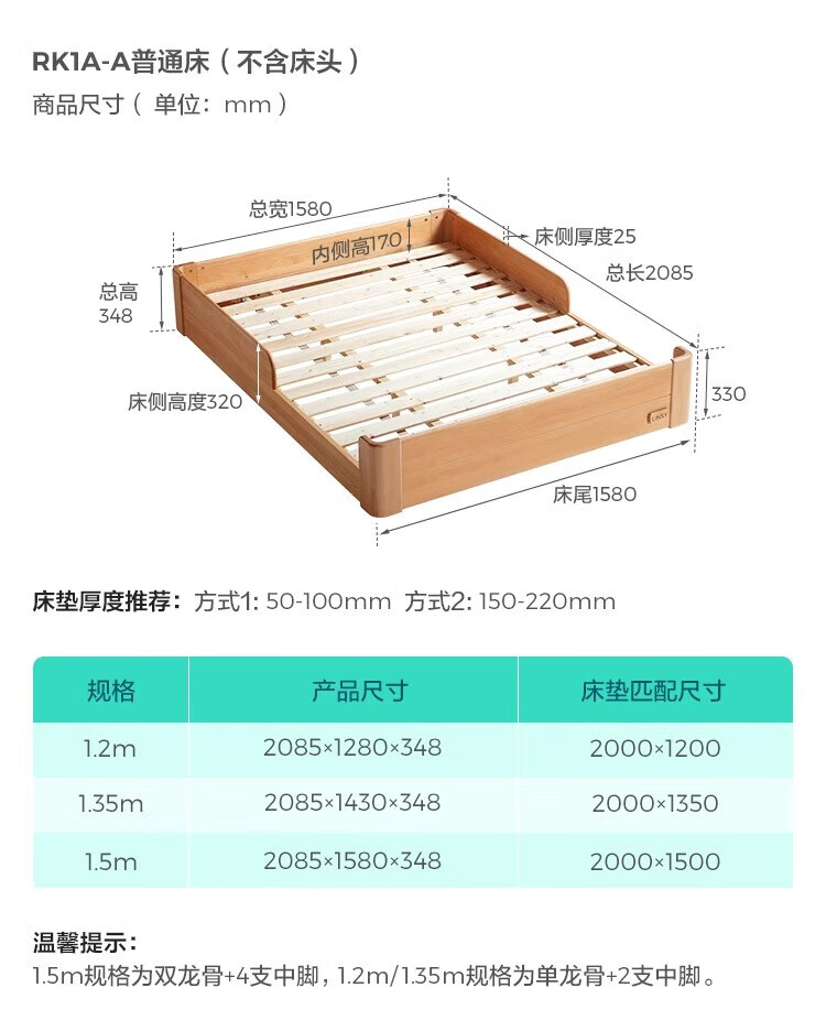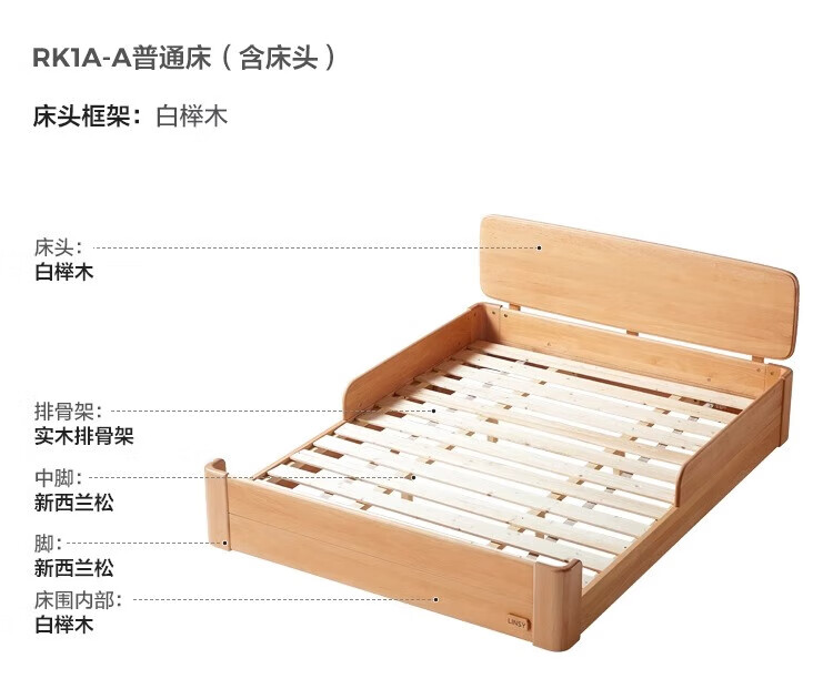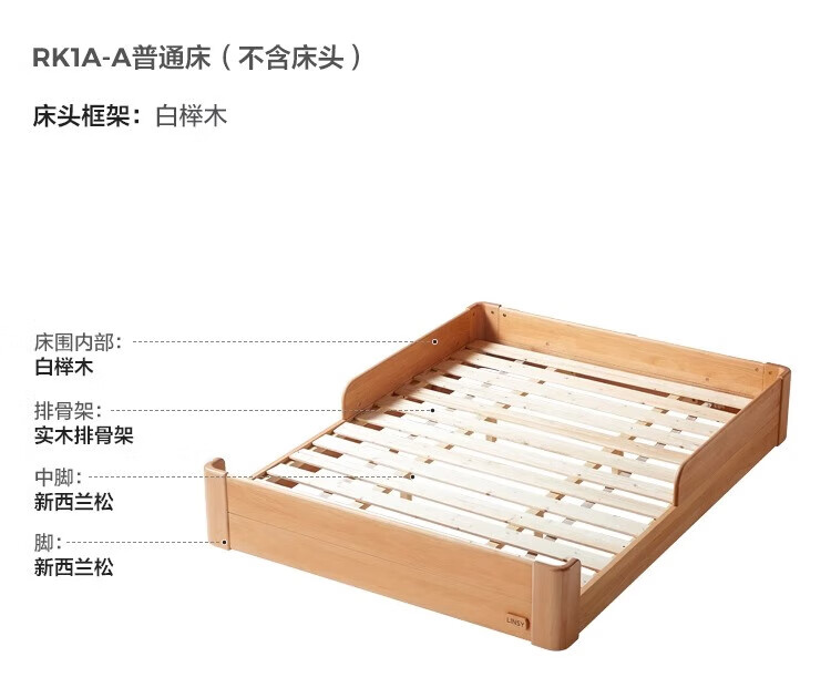 Lin's Home Butter Children's Bed Beech Tatami 1.5m Montessori Platform Bed Children's Room Bedroom Furniture RK1A