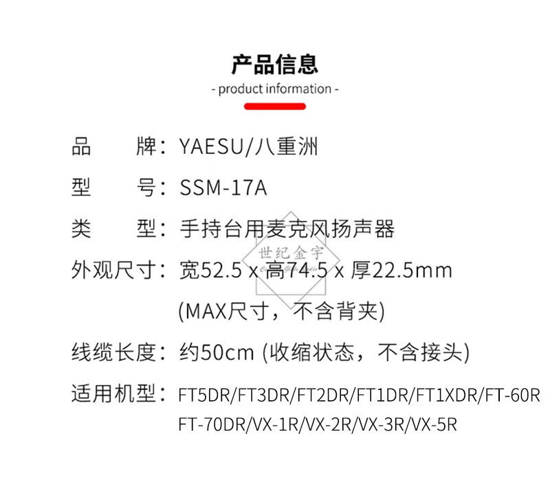 YAESU SSM-17A walkie-talkie hand microphone suitable for FT5D/3D, etc.