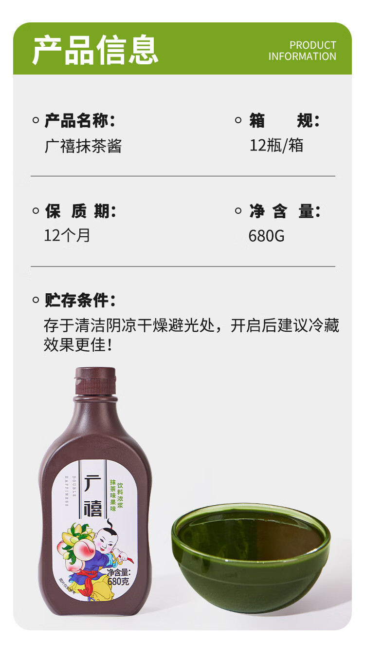 Guangxi Premium Matcha Sauce 680g Cocoa Sundae Caramel Ice Cream Coffee Milk Tea Bread Baking Commercial Ingredients