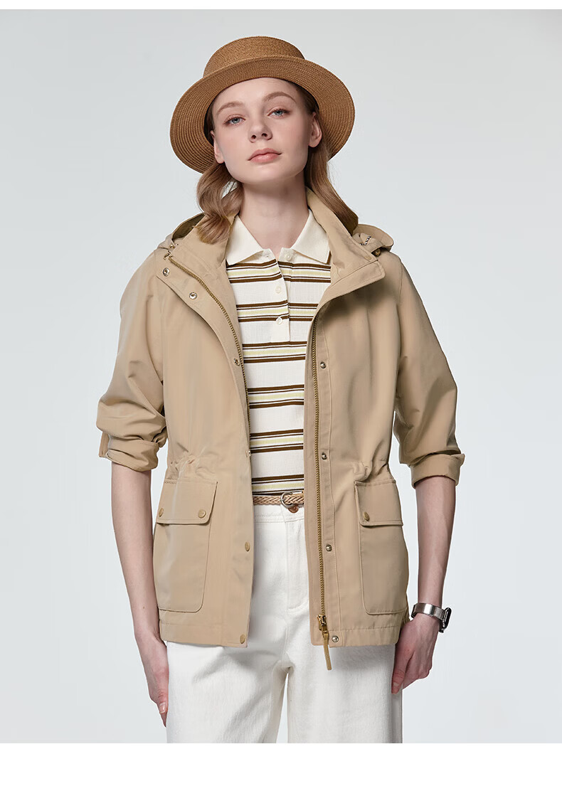 HAZZYS Women's Spring Jacket PHIZ Series Removable Hood Waist Jacket Women ASVSU0DAX05