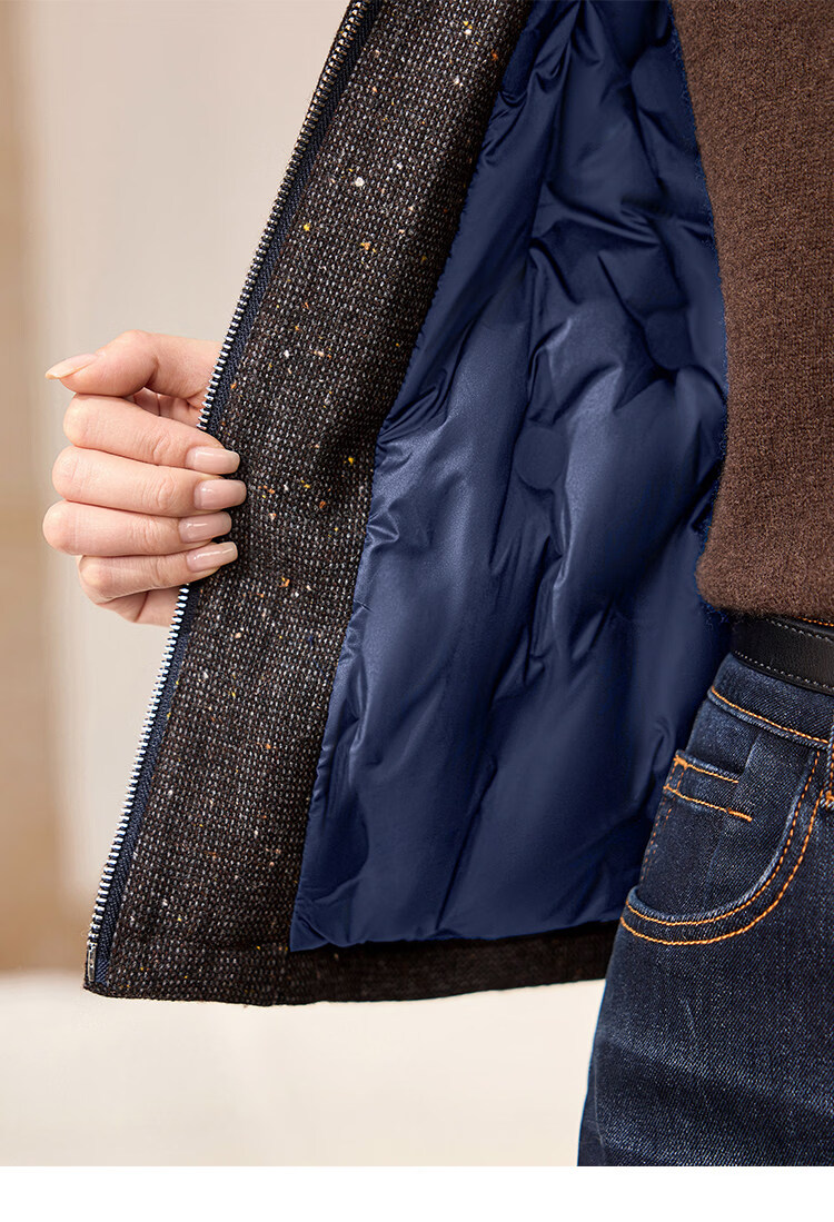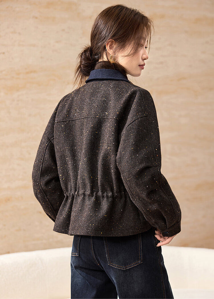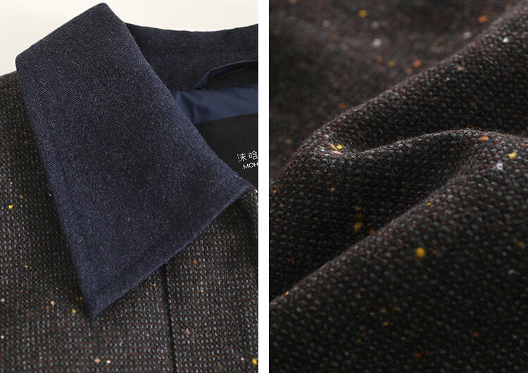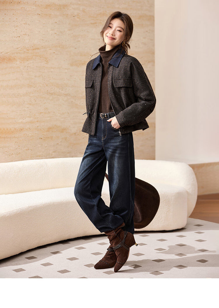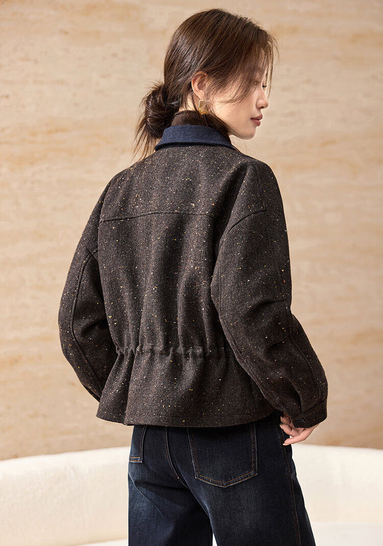 Mohan Yimei 25 new winter style wool color-blocked lapel waist and dropped shoulders micro cocoon style workwear style short down jacket