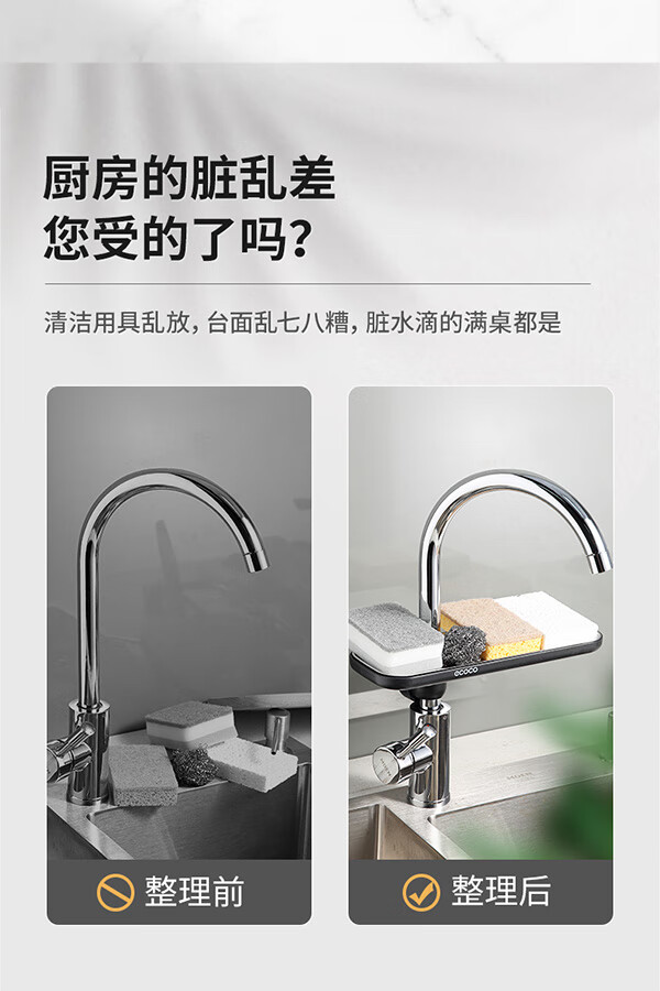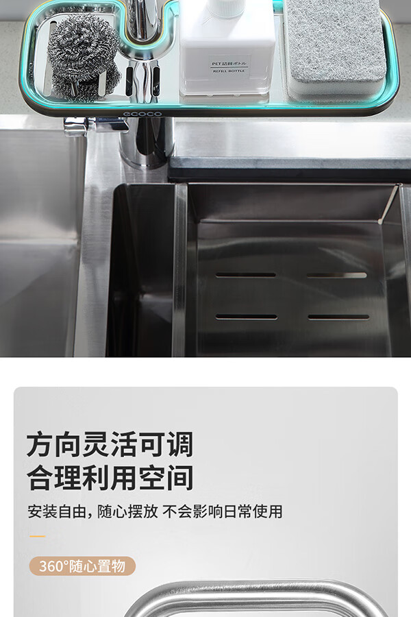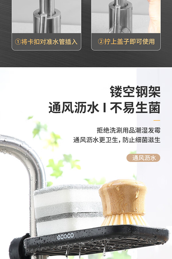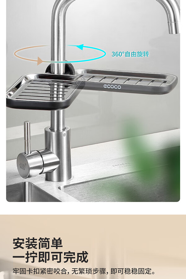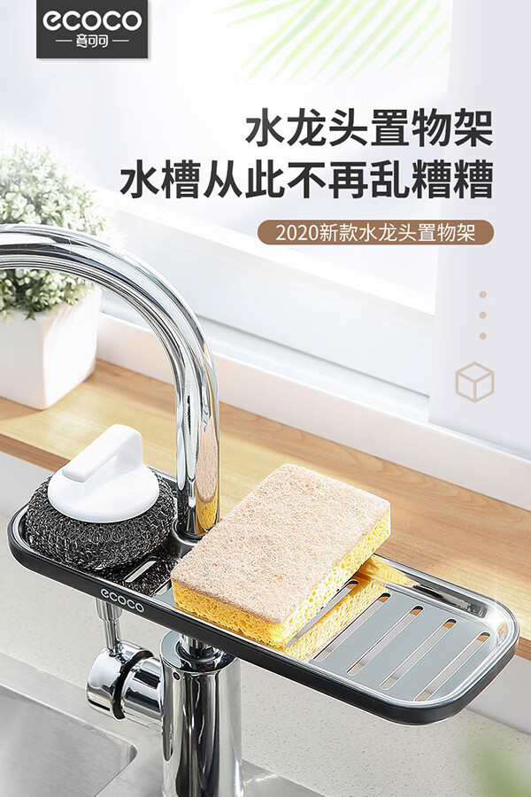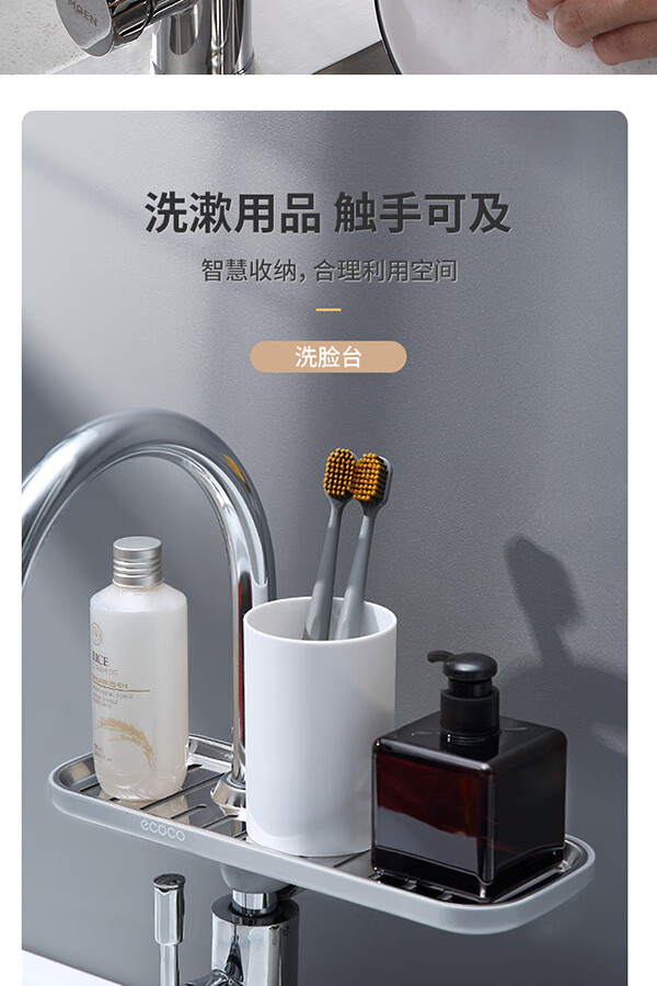 Ecoco stainless steel faucet rack storage kitchen drain basket household punch-free sink dishwasher upgraded small size - gray