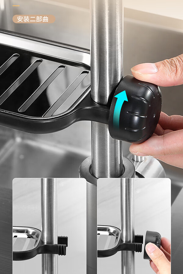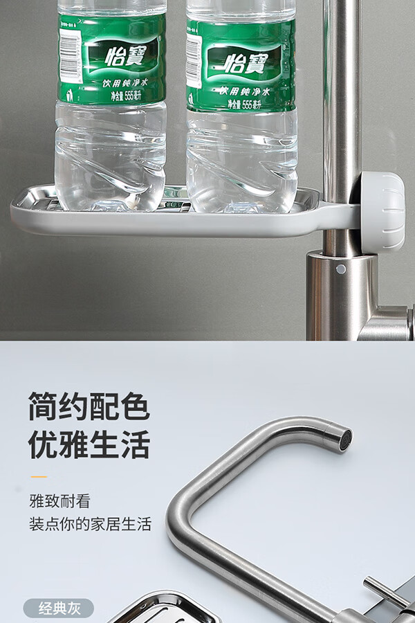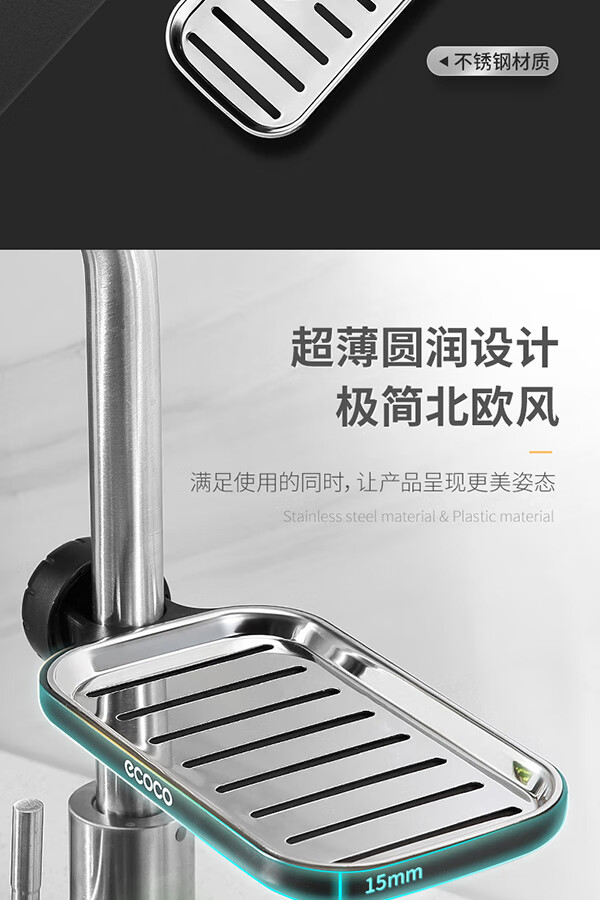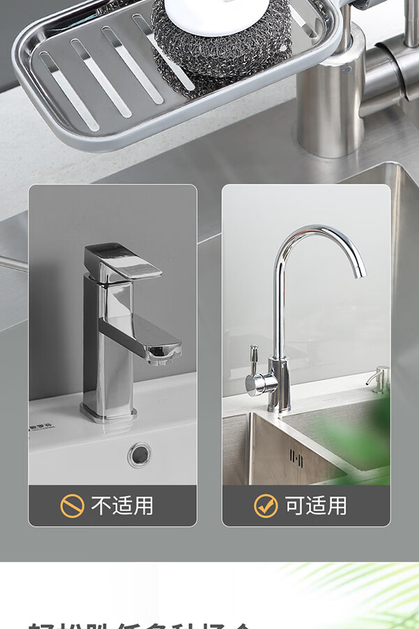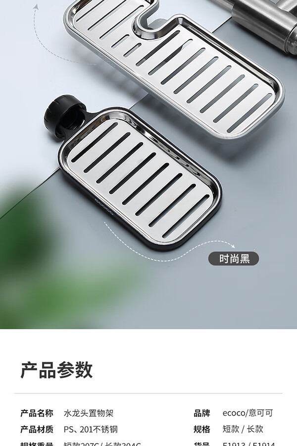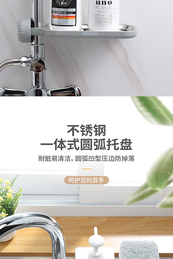 Ecoco stainless steel faucet rack storage kitchen drain basket household punch-free sink dishwasher upgraded small size - gray