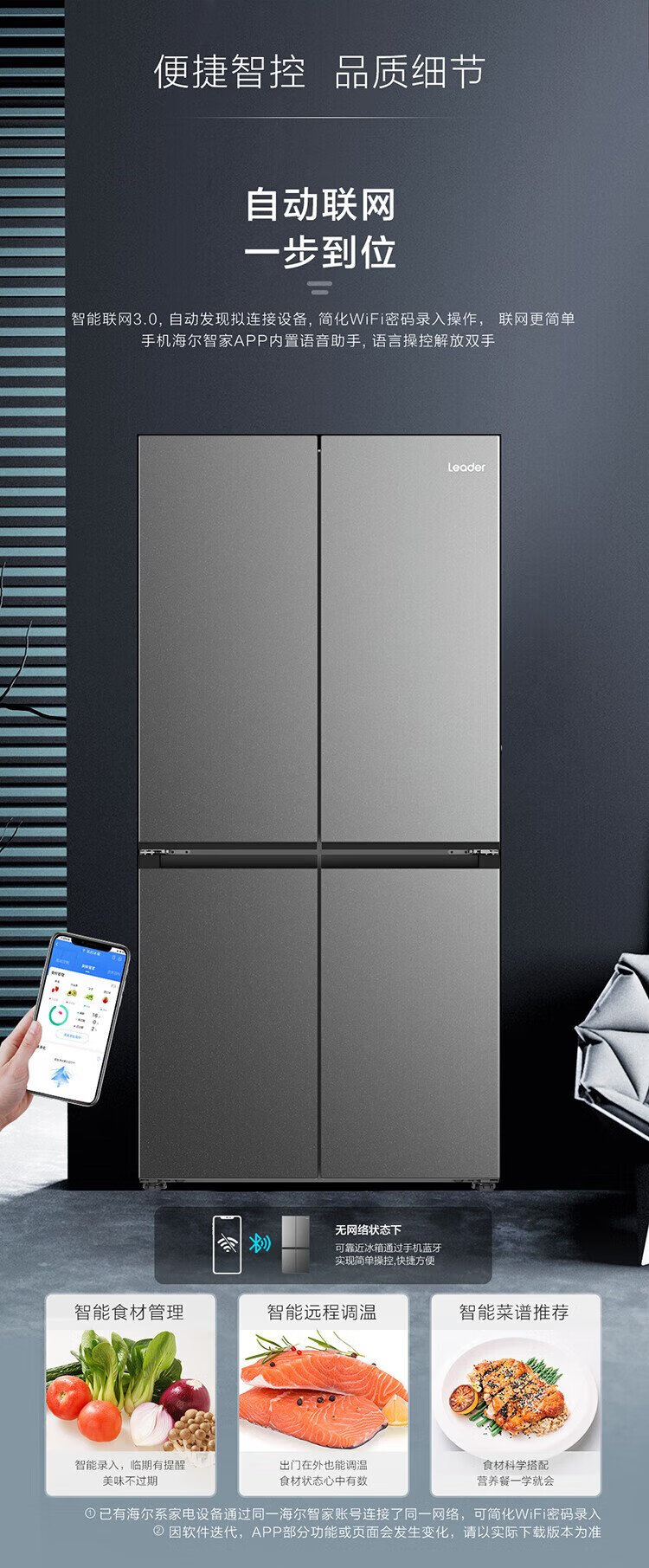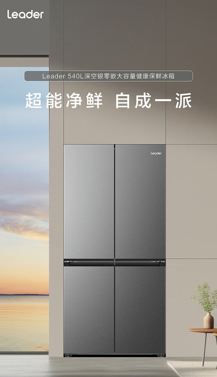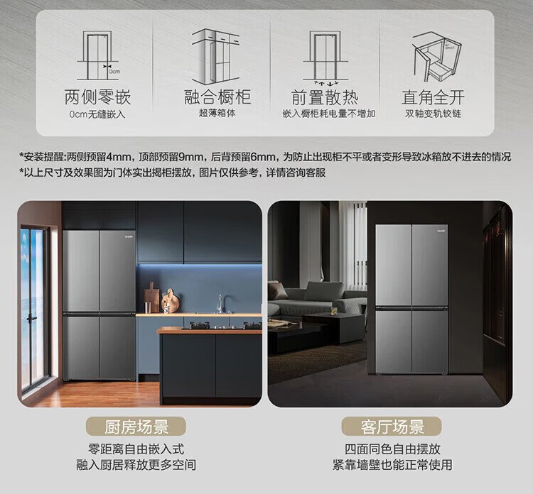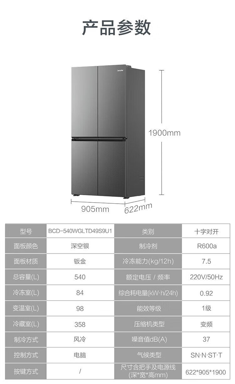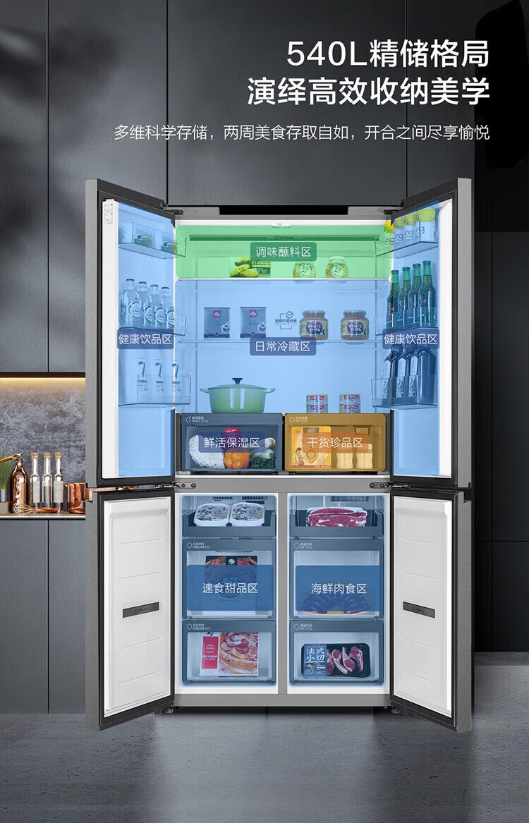 Haier's Tongshuai Refrigerator zero-distance embedded 540-liter cross-door four-door dual-frequency conversion first-class energy-efficient air-cooled frost-free ultra-thin large-capacity household appliance 540 liters + EPP ultra-clean system + fully variable temperature space + bottom heat dissipation