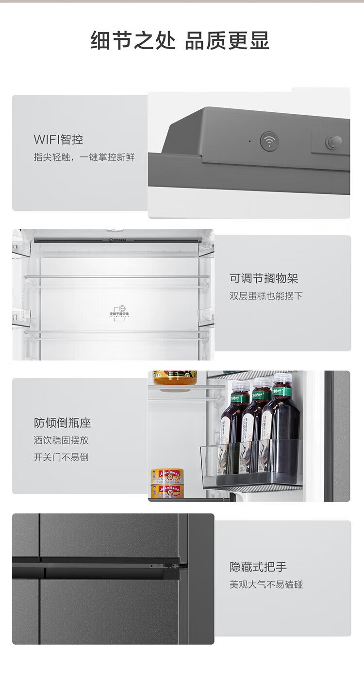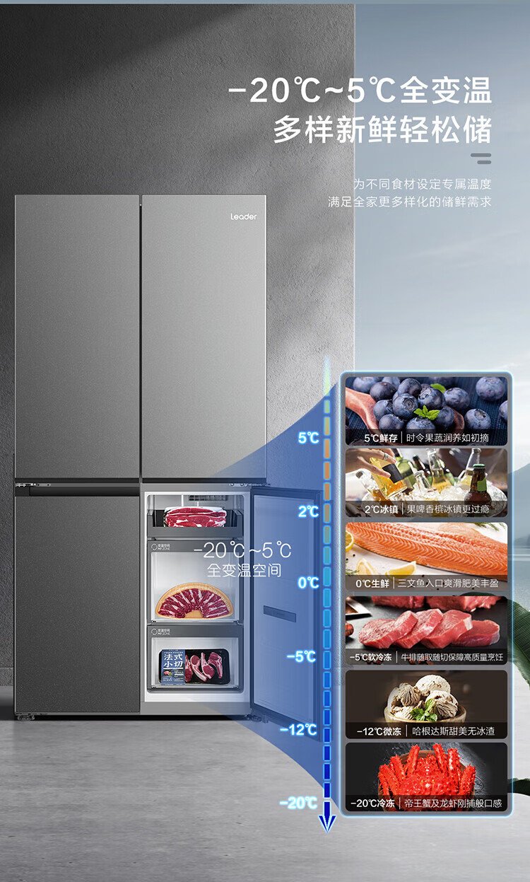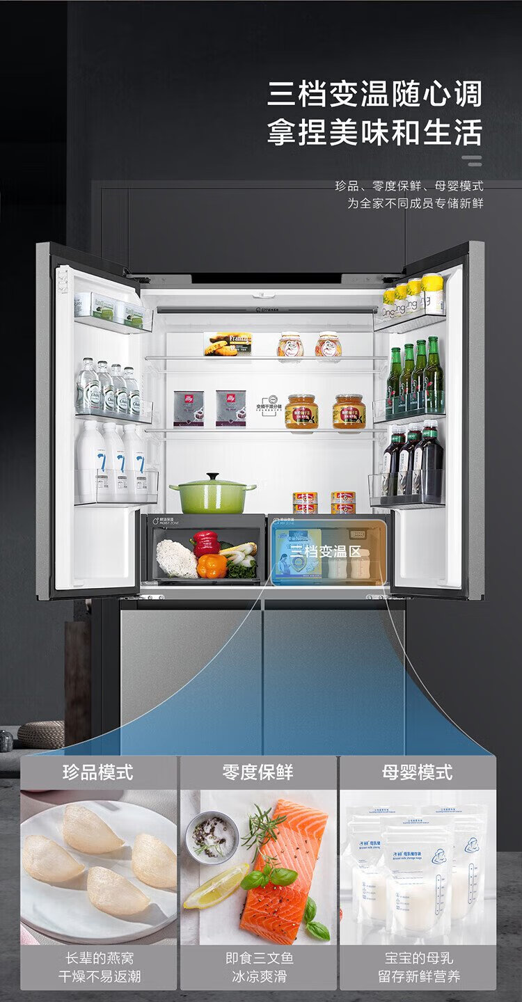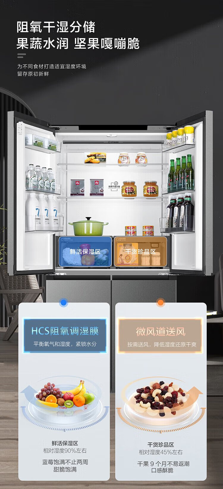 Haier's Tongshuai Refrigerator zero-distance embedded 540-liter cross-door four-door dual-frequency conversion first-class energy-efficient air-cooled frost-free ultra-thin large-capacity household appliance 540 liters + EPP ultra-clean system + fully variable temperature space + bottom heat dissipation