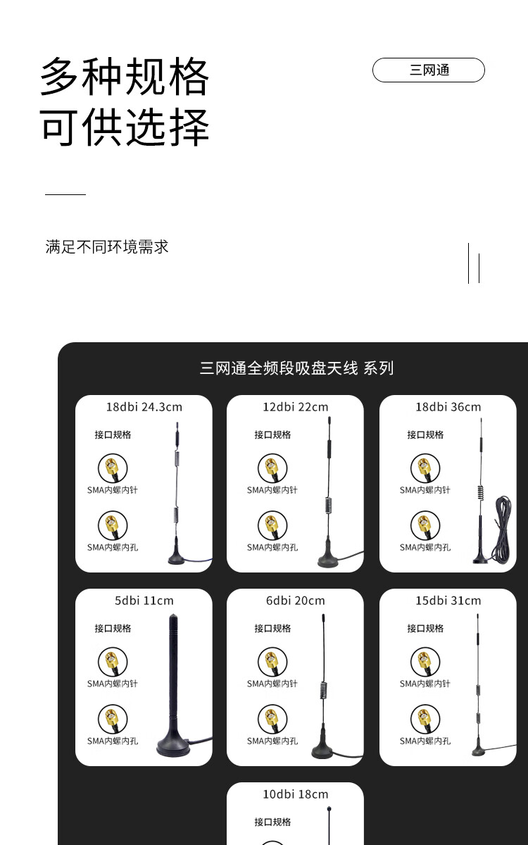 Jiudingxin 4G suction cup antenna DTU compatible with 3G/GSM gain 12DBI IoT charging pile vending cabinet wireless routing antenna SMA inner needle/height 22cm/1 meter JDX-XPTX501