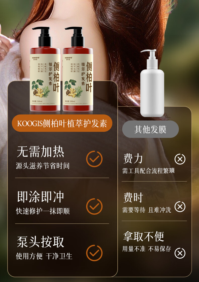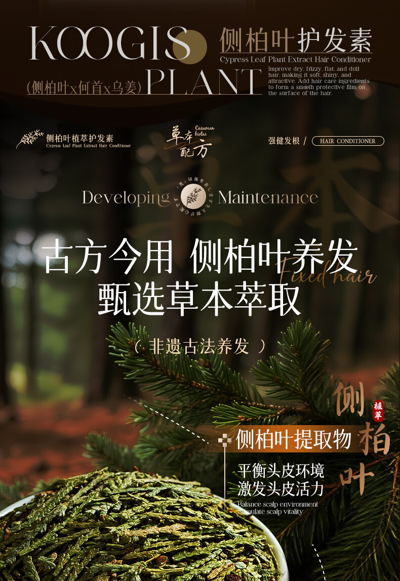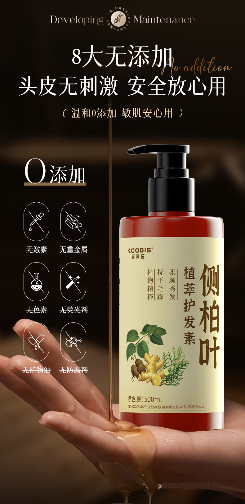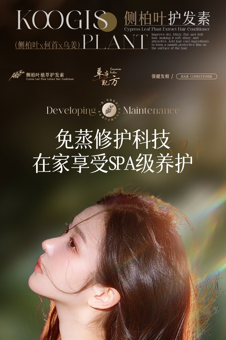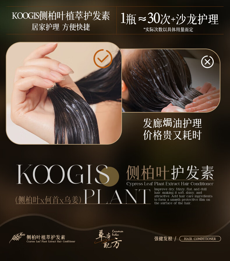 KOOGIS Platycladus orientalis leaf conditioner hair mask Polygonum multiflorum raw herb ginger smoothes dry and frizzy hair repairs can be used with shampoo