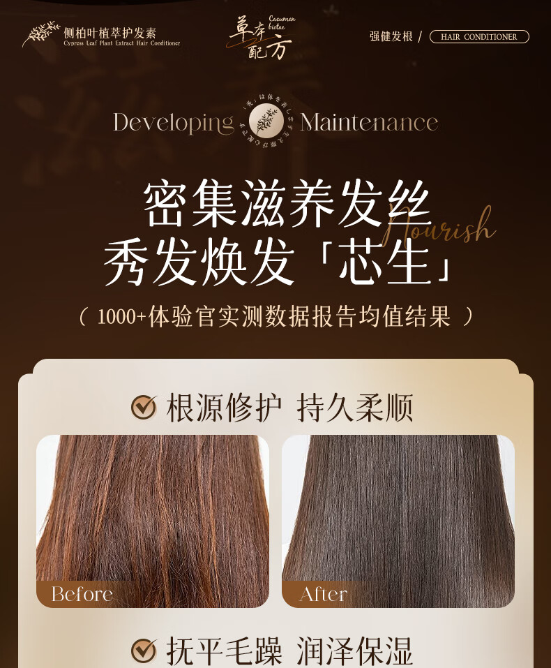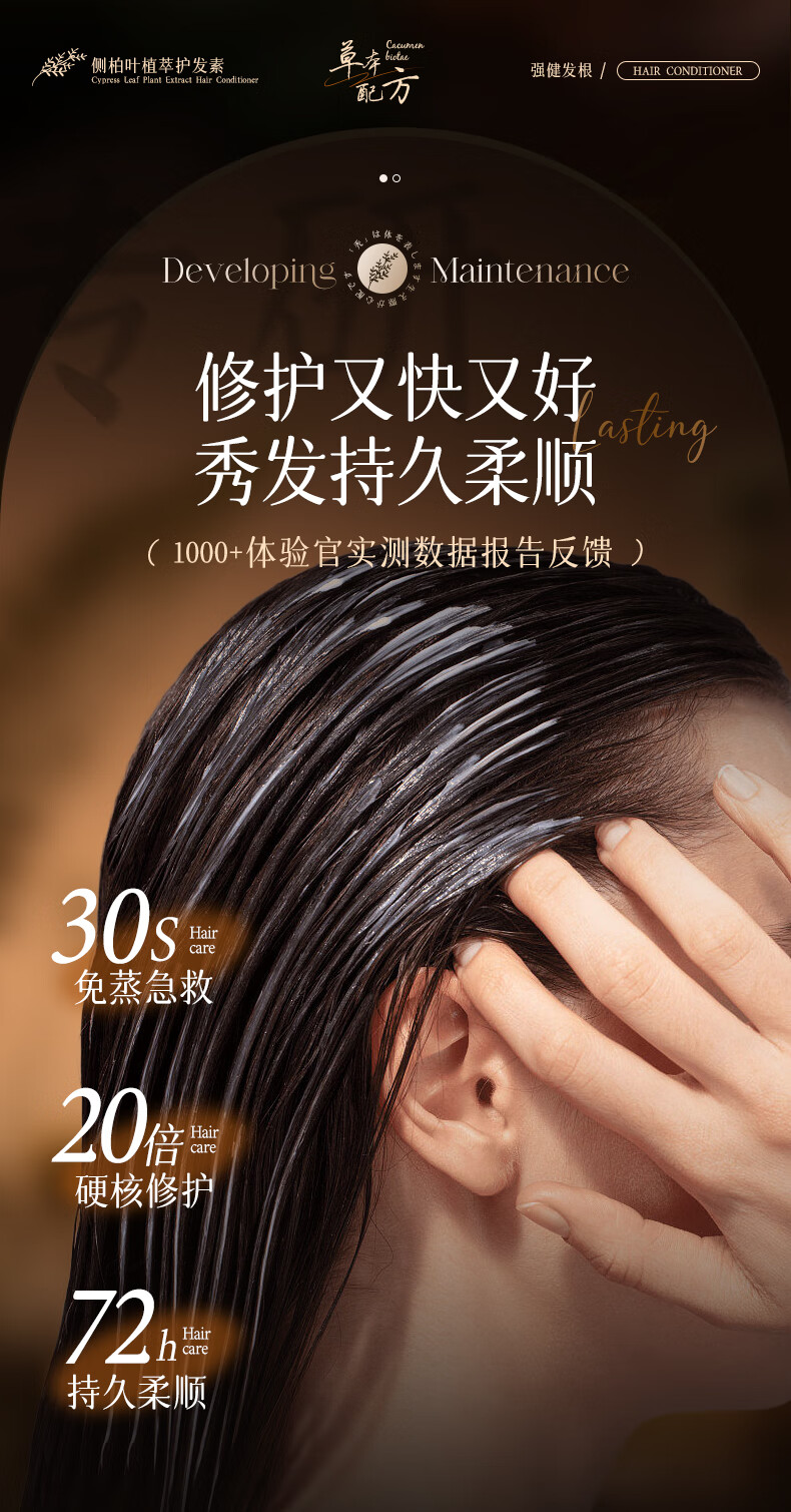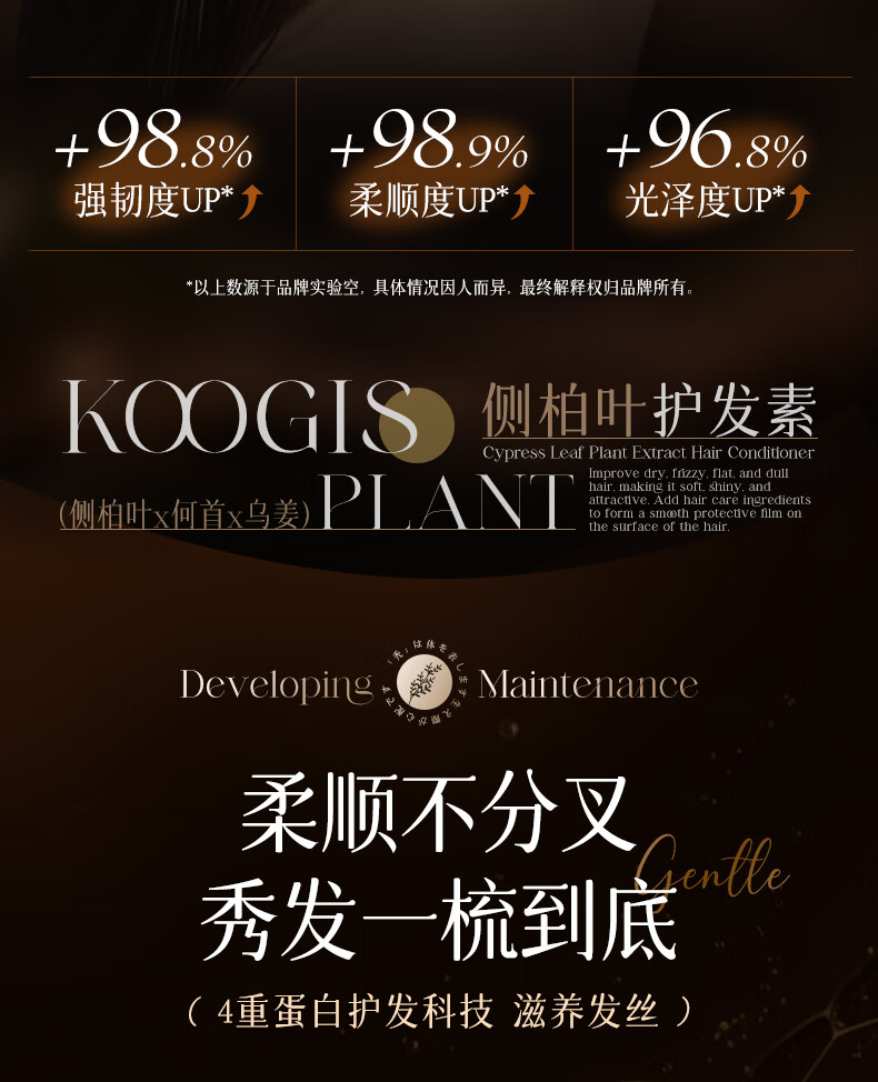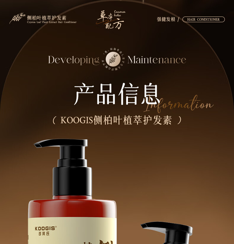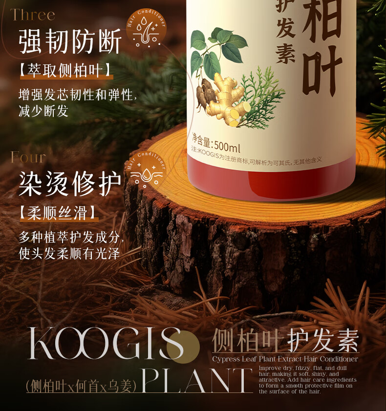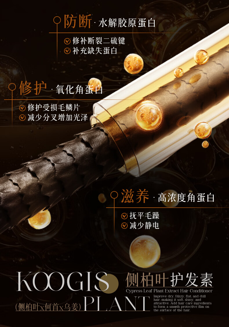 KOOGIS Platycladus orientalis leaf conditioner hair mask Polygonum multiflorum raw herb ginger smoothes dry and frizzy hair repairs can be used with shampoo