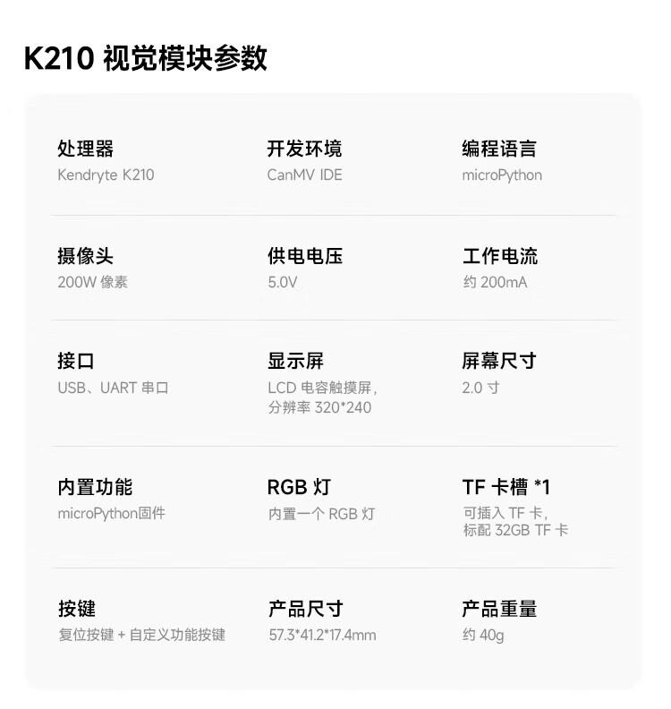 Yabo Intelligent K210 visual recognition module CanMV sensor AI artificial intelligence robot camera Python