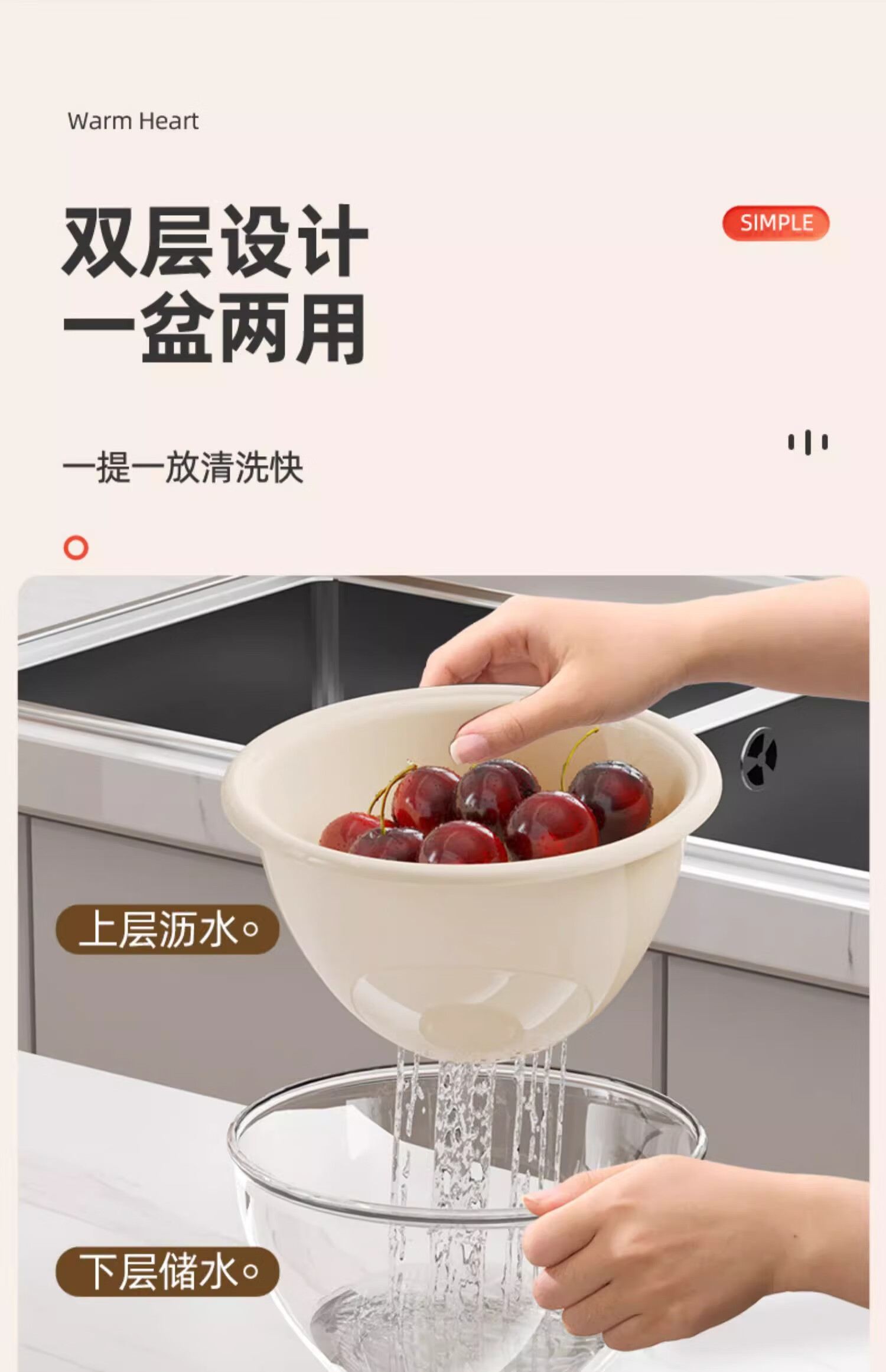 Added vegetable sink drain basket home kitchen double-layer fruit basket washing vegetable basin living room exquisite small fruit plate