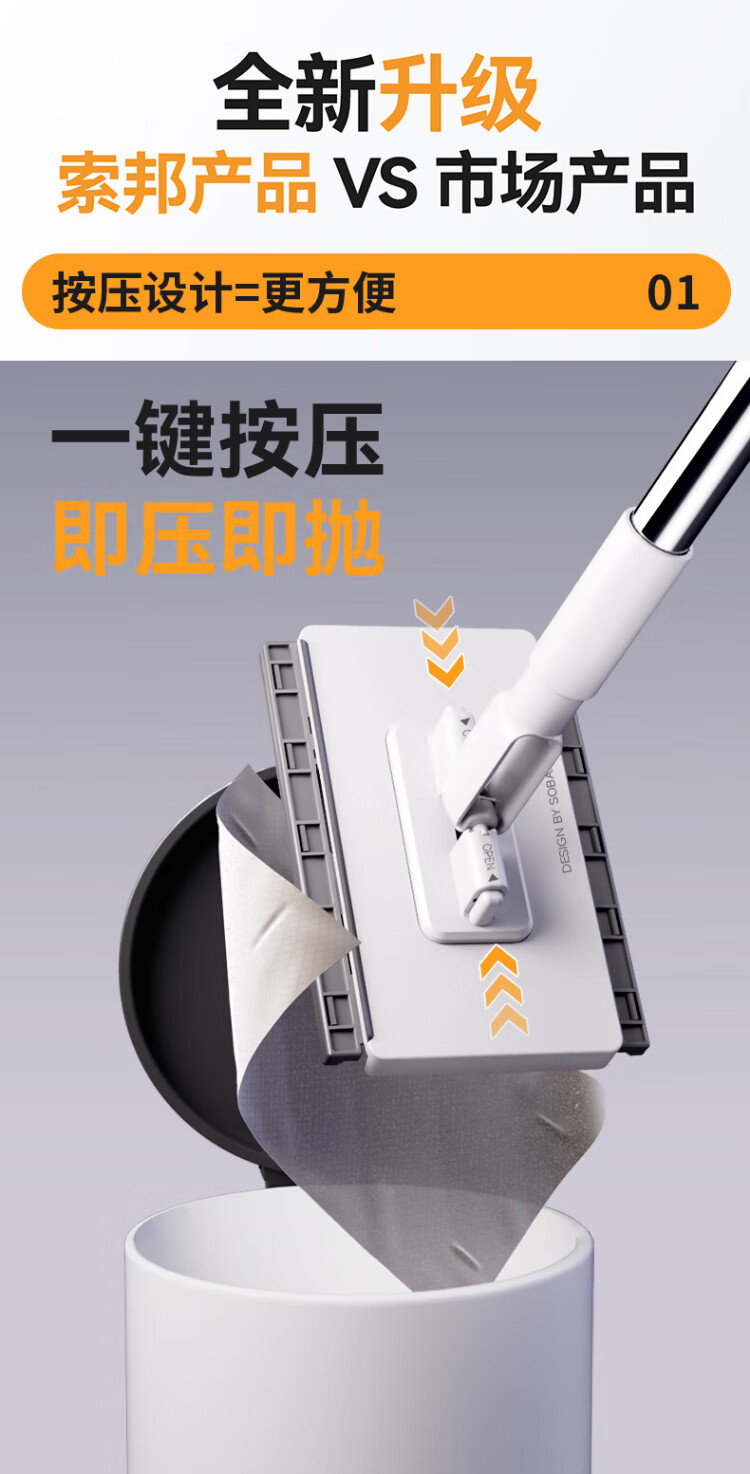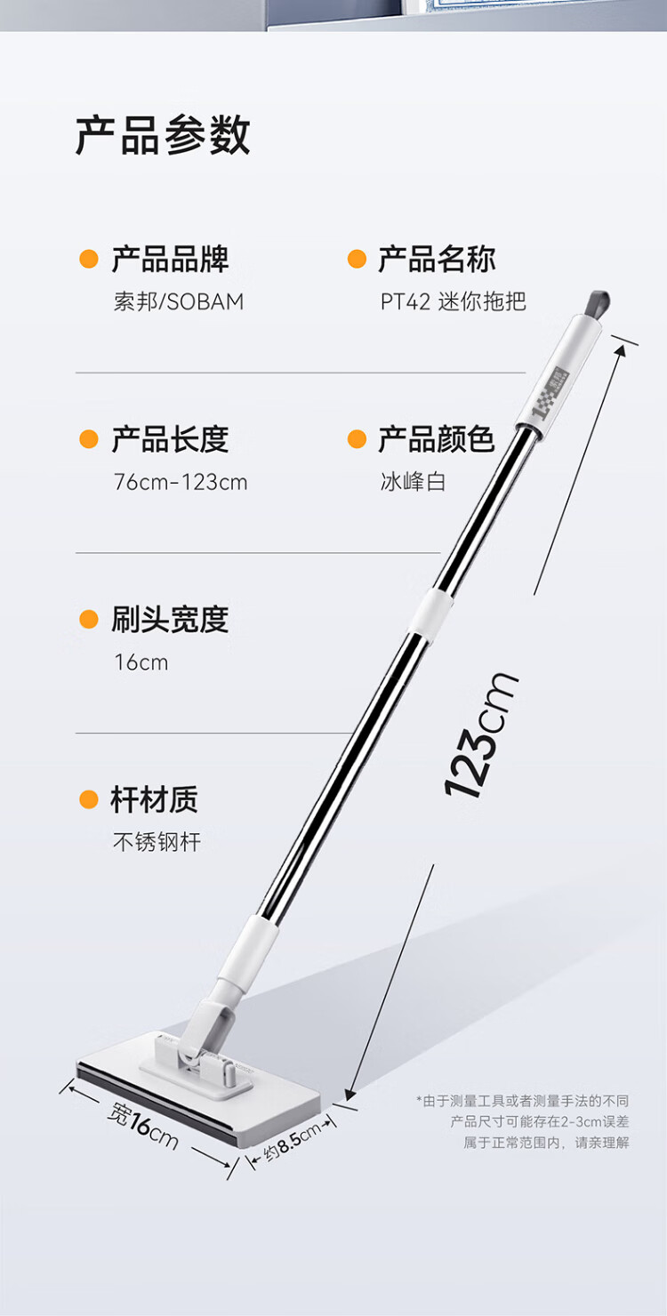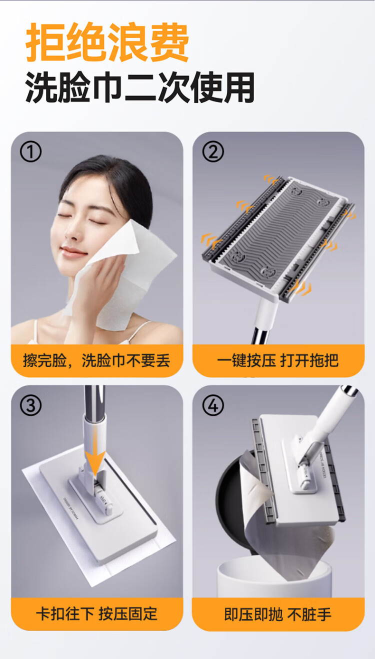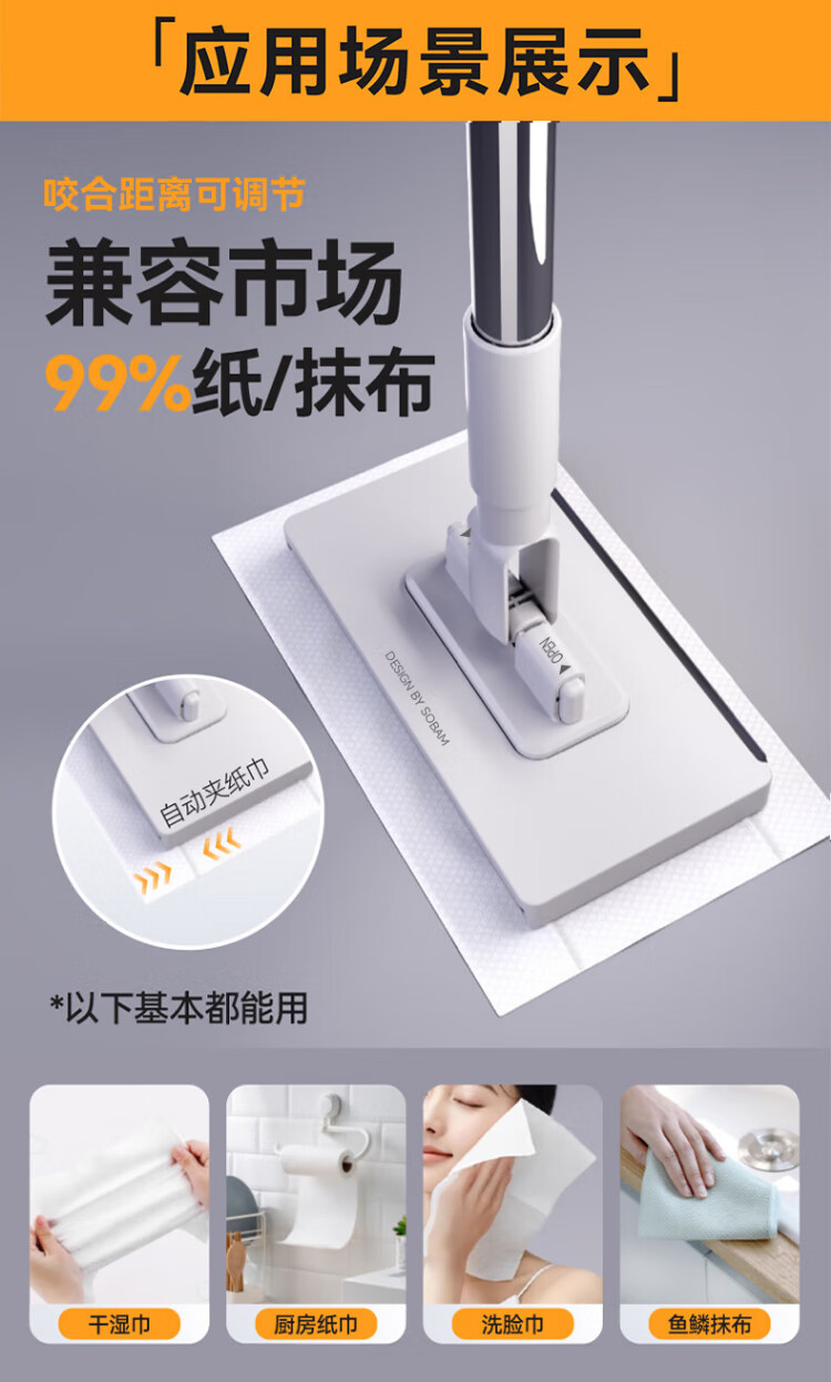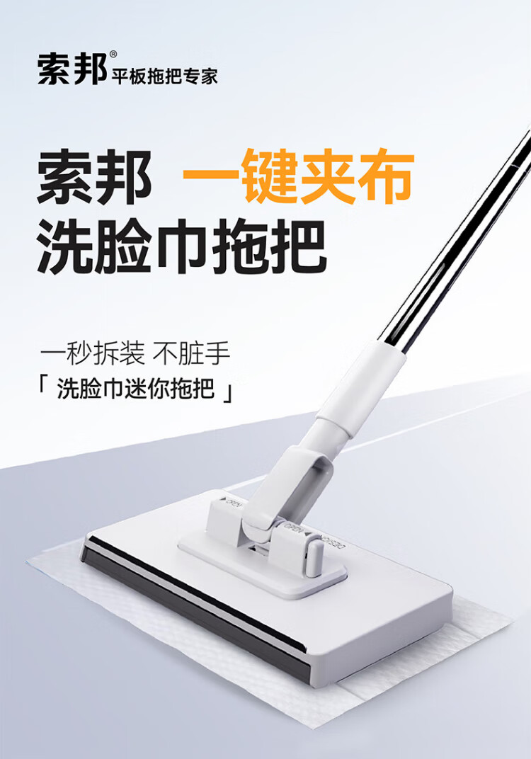 Sorbonne face towel flat mop 16cm telescopic pole 120cm household hand-free lazy mopping artifact clip cloth mop