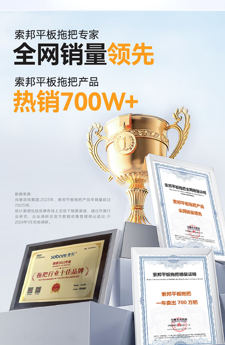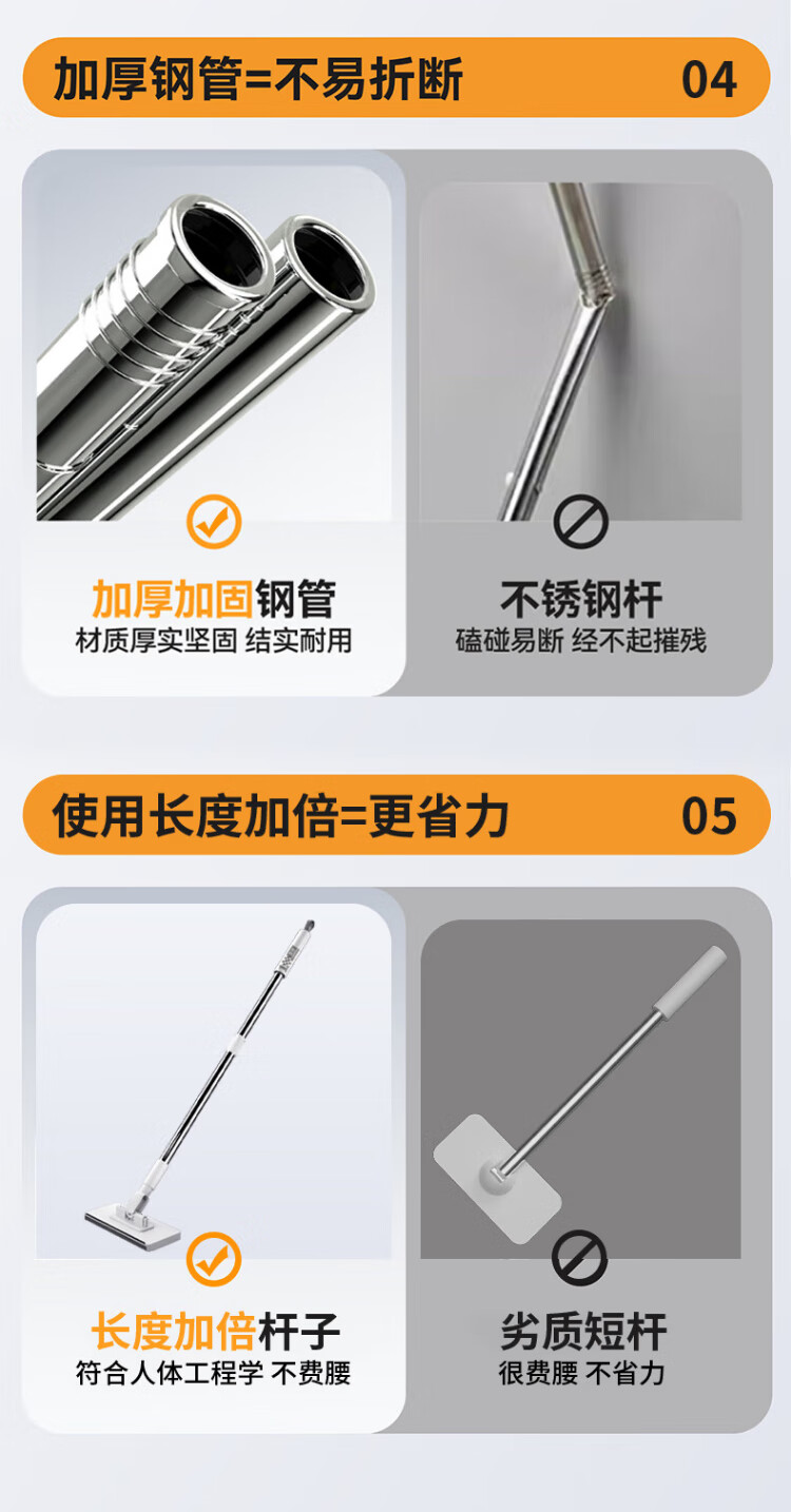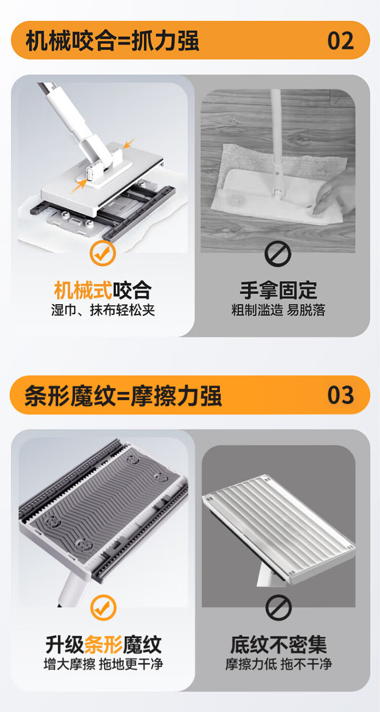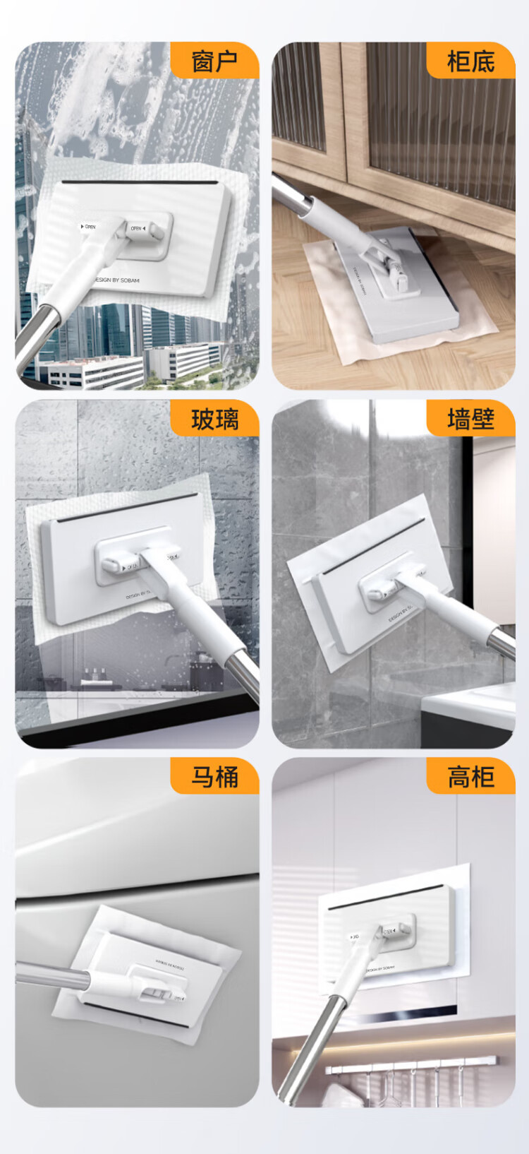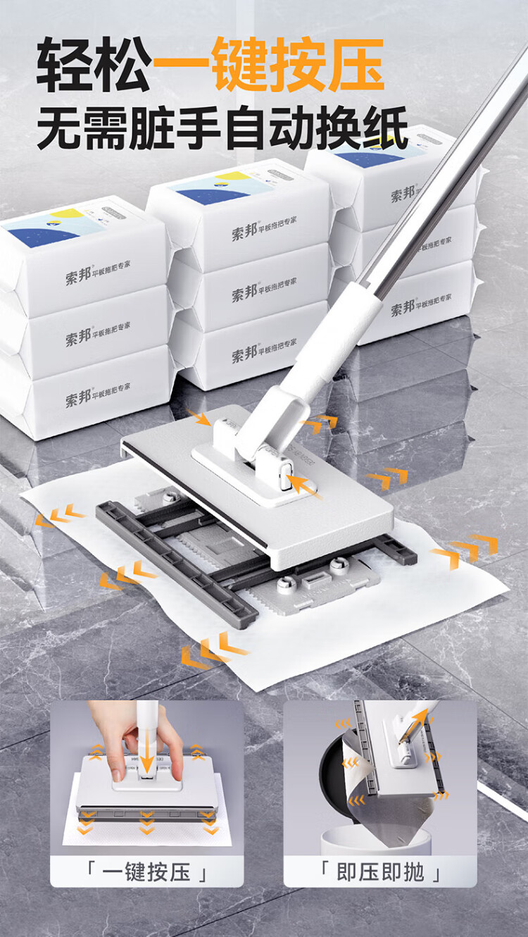 Sorbonne face towel flat mop 16cm telescopic pole 120cm household hand-free lazy mopping artifact clip cloth mop
