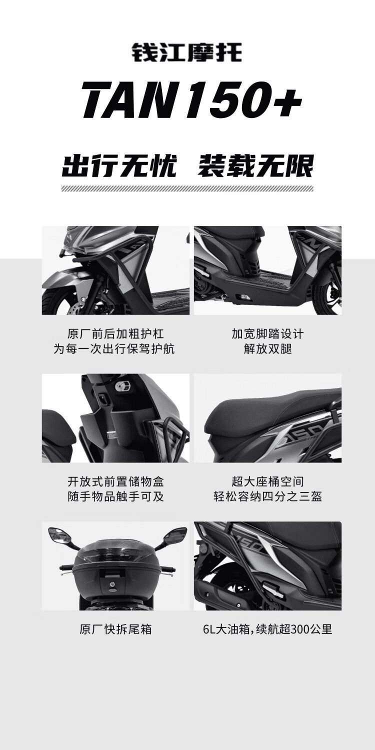 Qianjiang TAN150+ fuel motorcycle, cool pedals, fuel-saving takeaway truck, bumper + trunk, starry night black