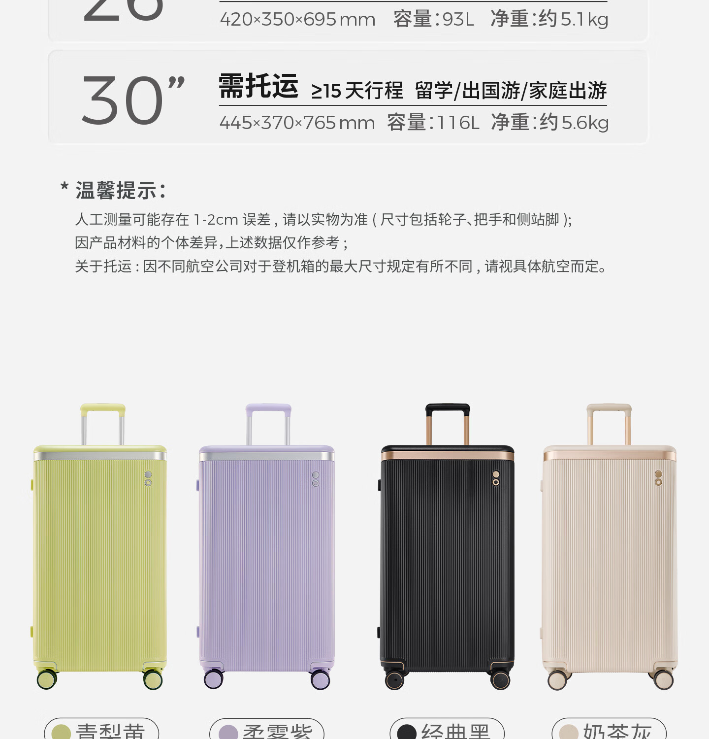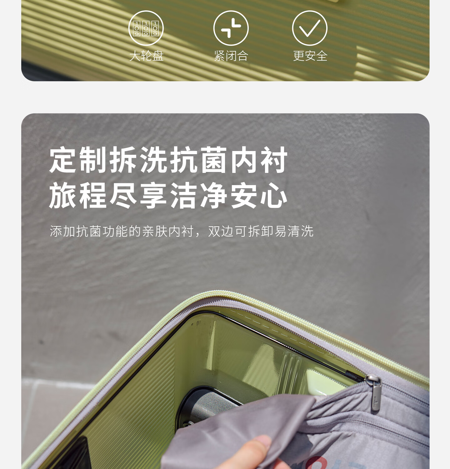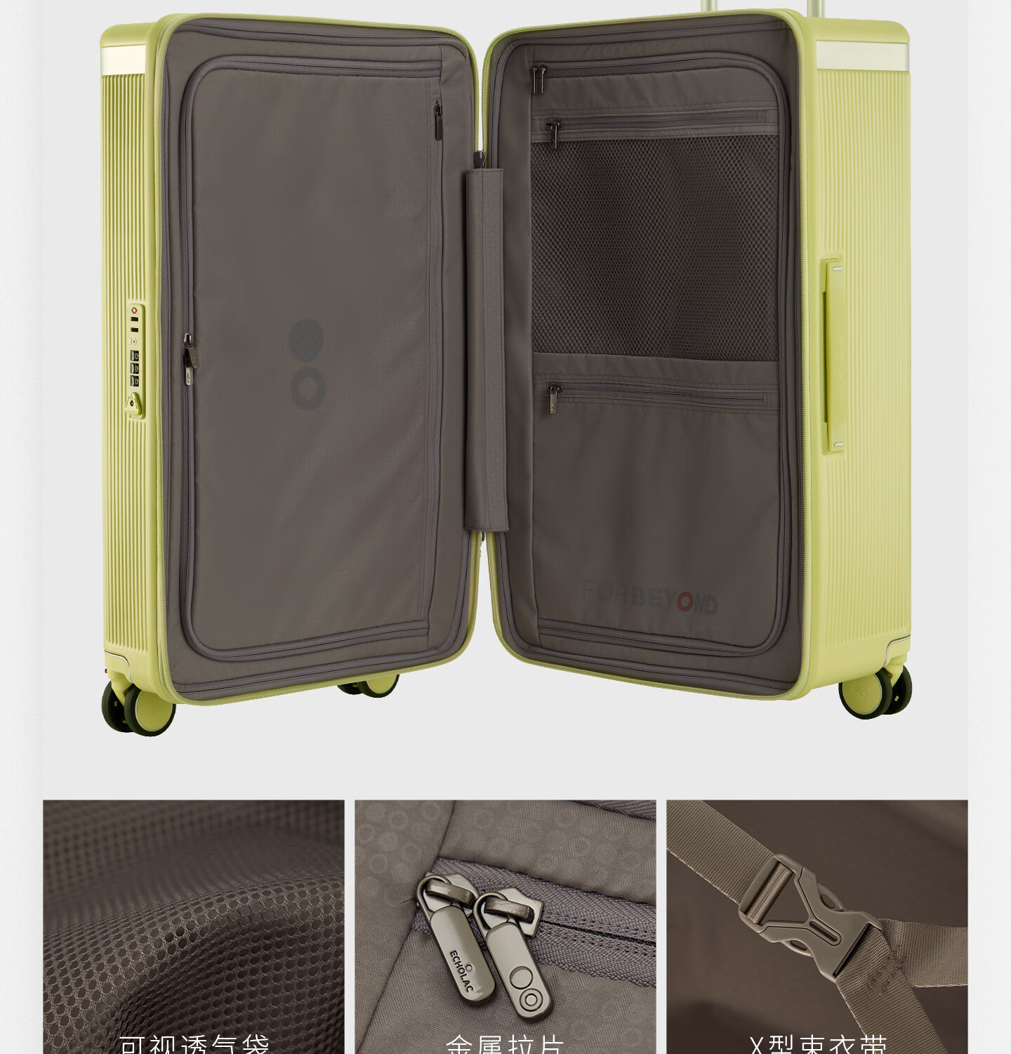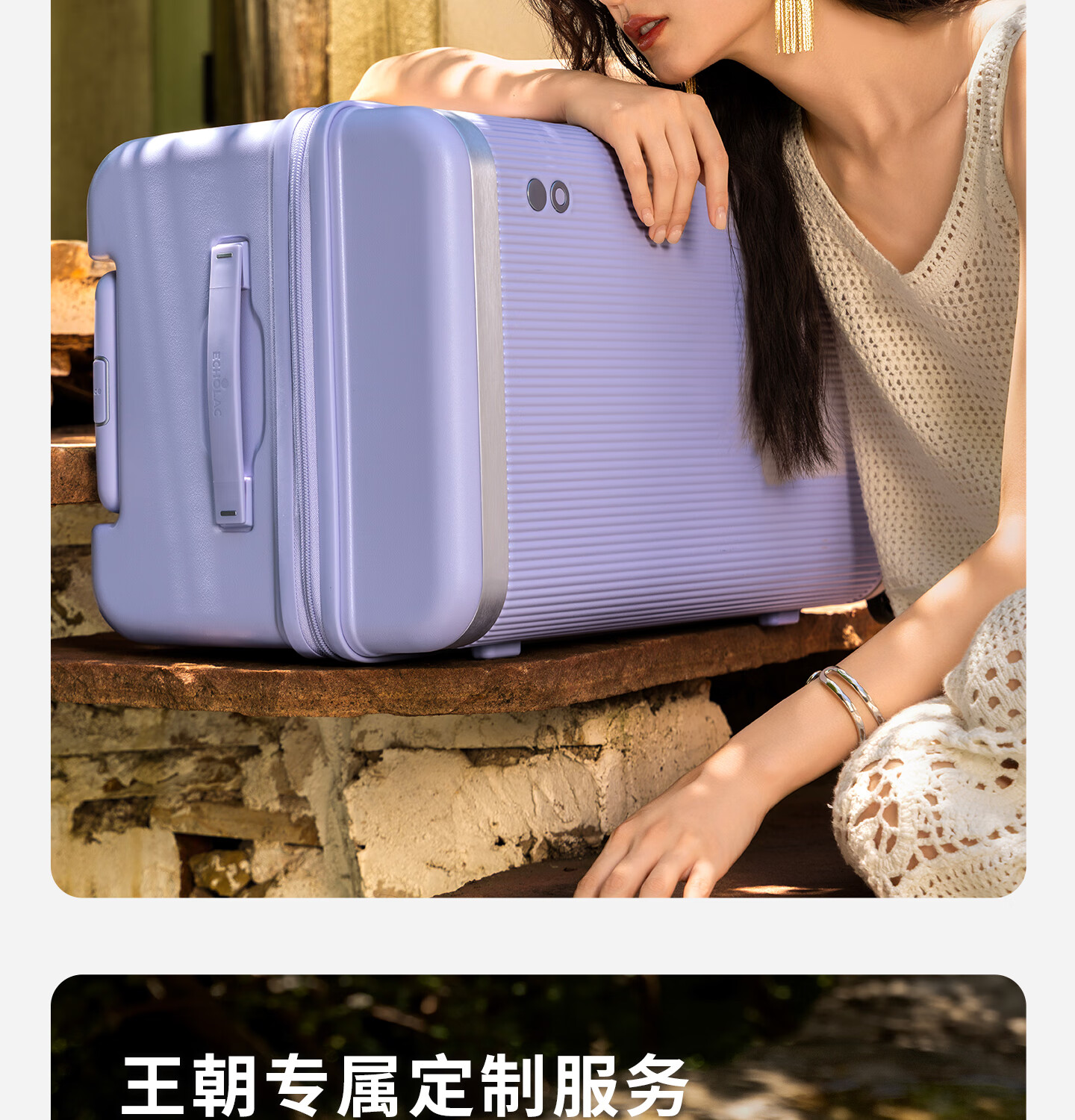 Echolac square suitcase with removable and washable interior large-capacity password box universal wheel trolley case PC142KU black 26 inches