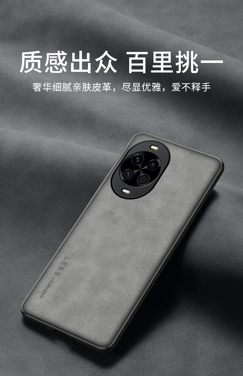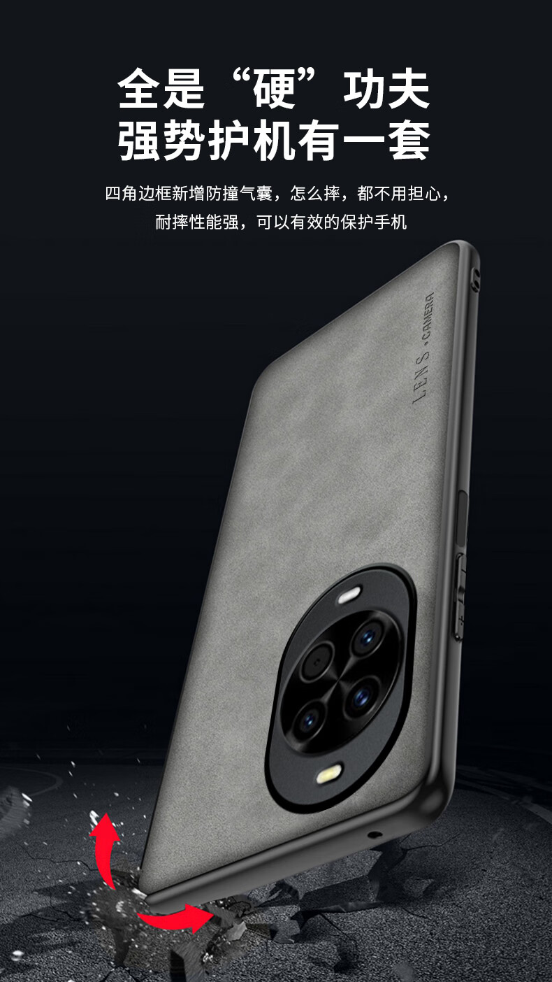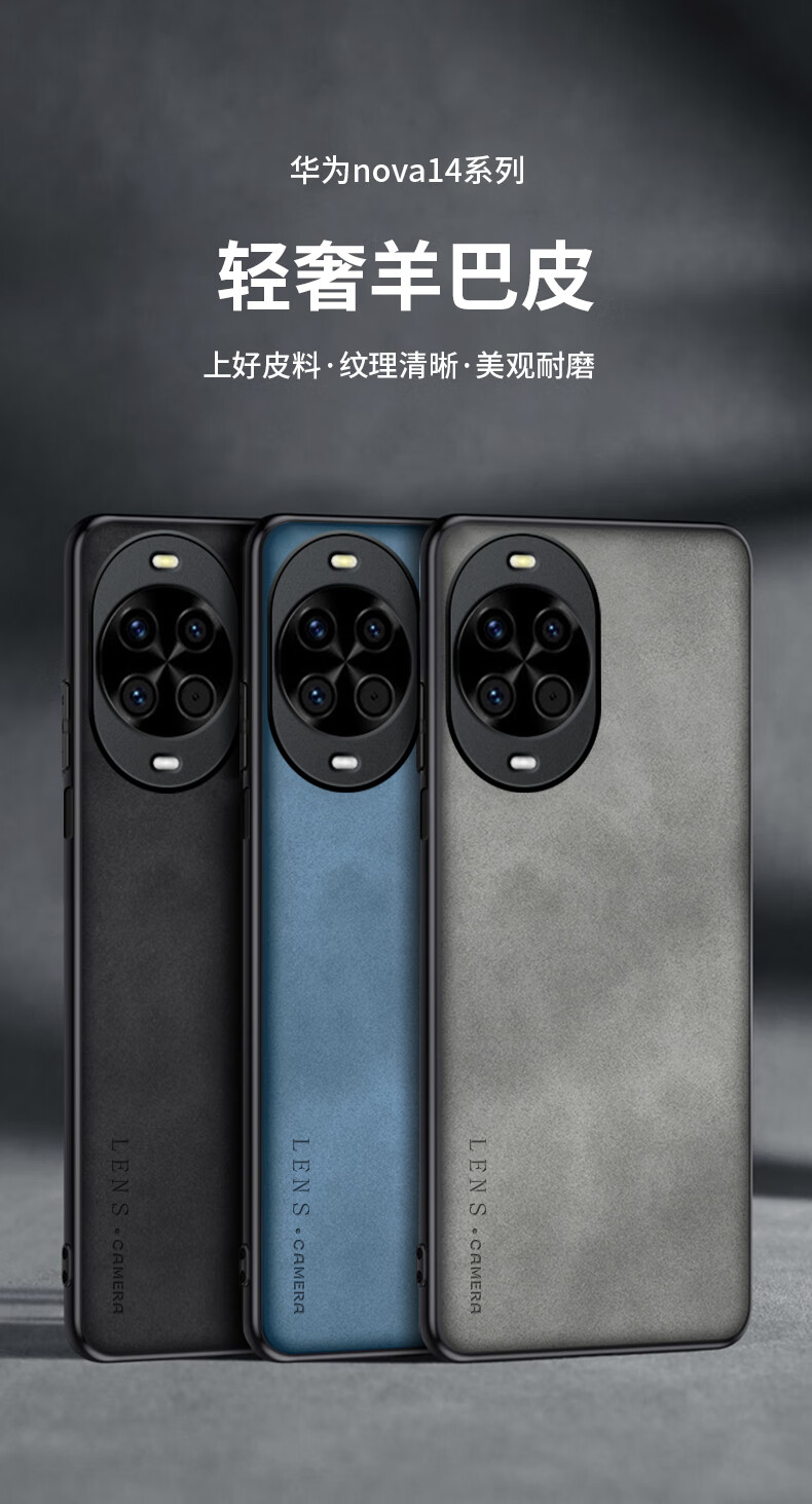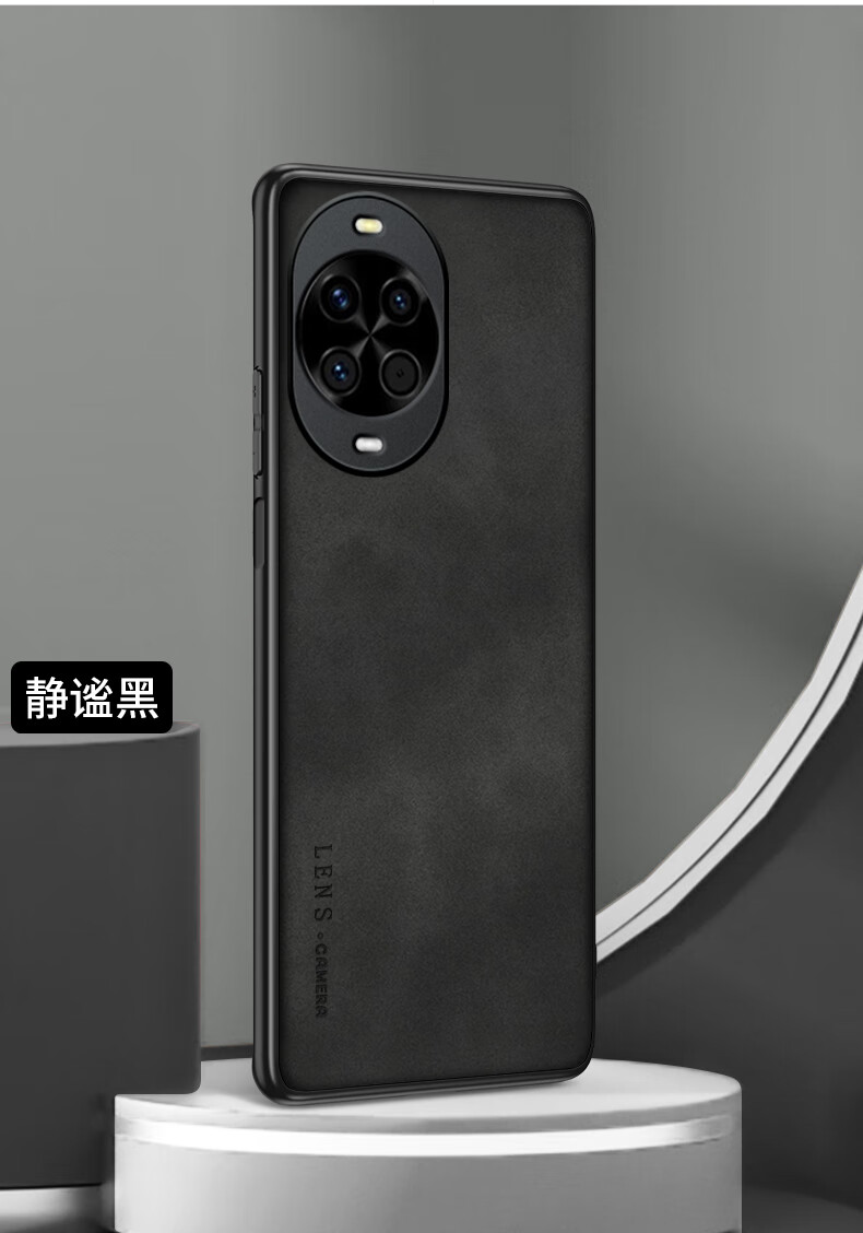 SHIYONG is suitable for Huawei nova14 mobile phone case, nova14 protective cover, lens, full-coverage, silicone soft edge, anti-fall, ultra-thin, simple, fashionable, leather-textured case for men and women, quiet black
