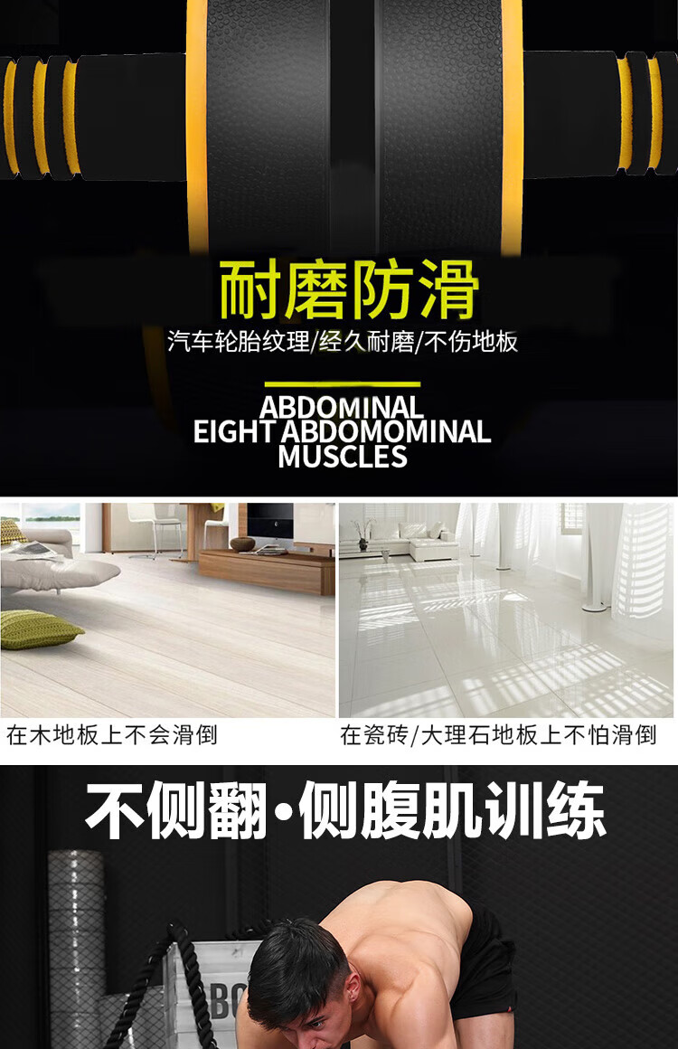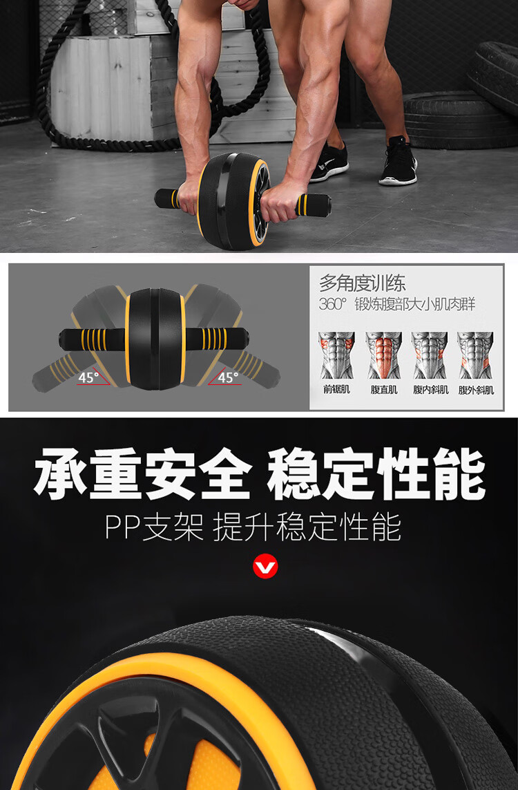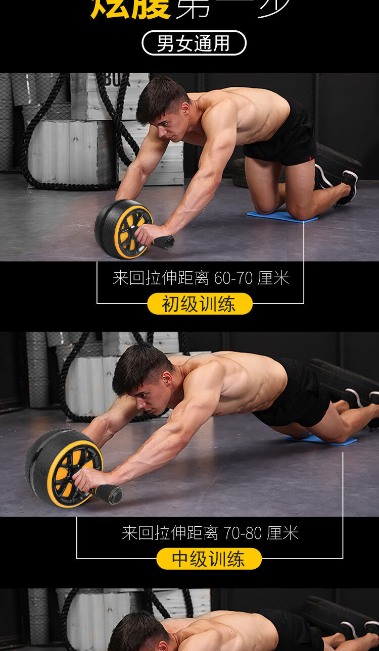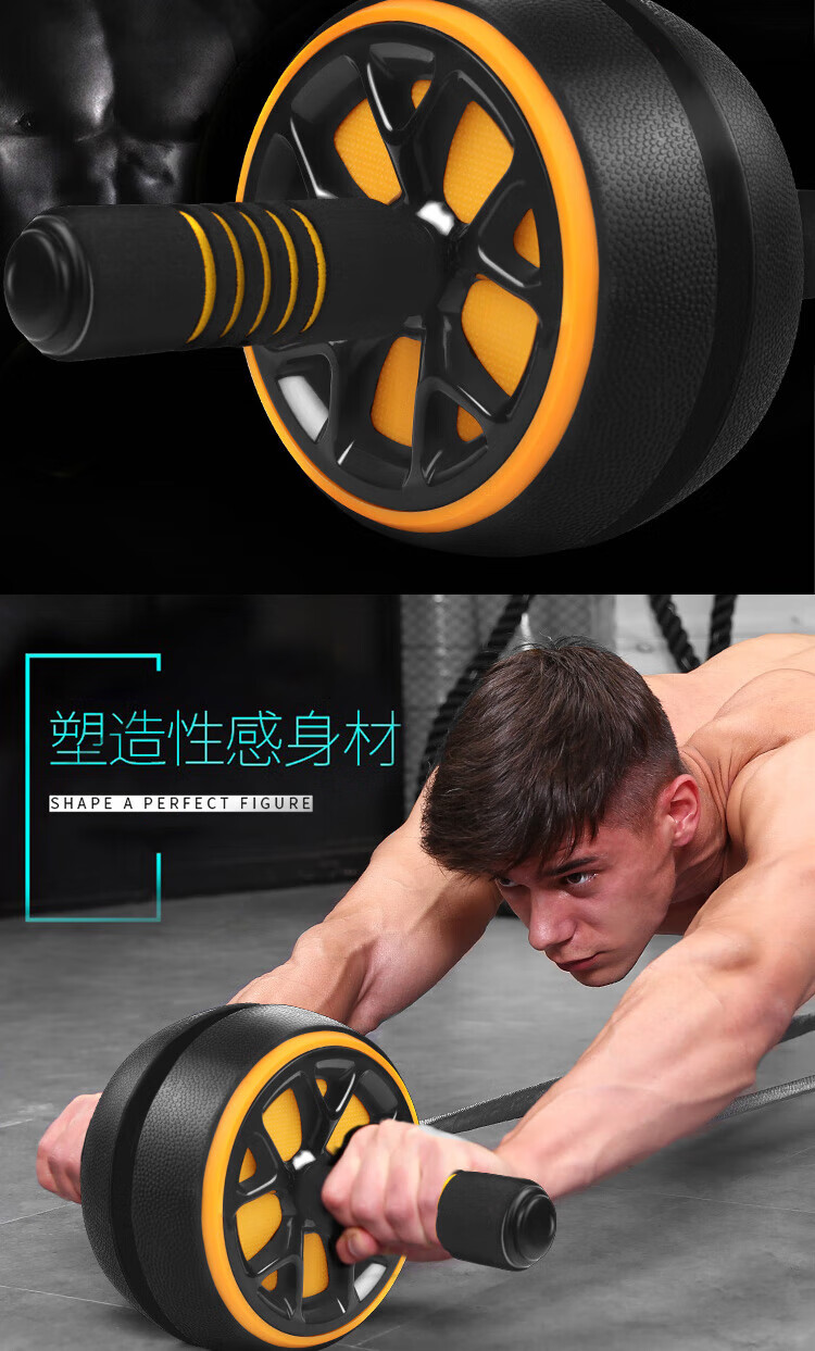 Duweike abdominal wheel abdominal muscle training men's and women's abdominal crunch fitness equipment home non-rebound with kneeling pads black and yellow