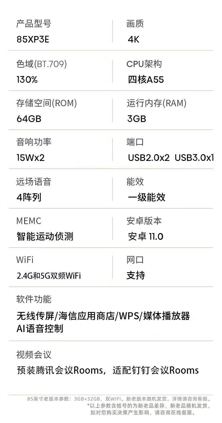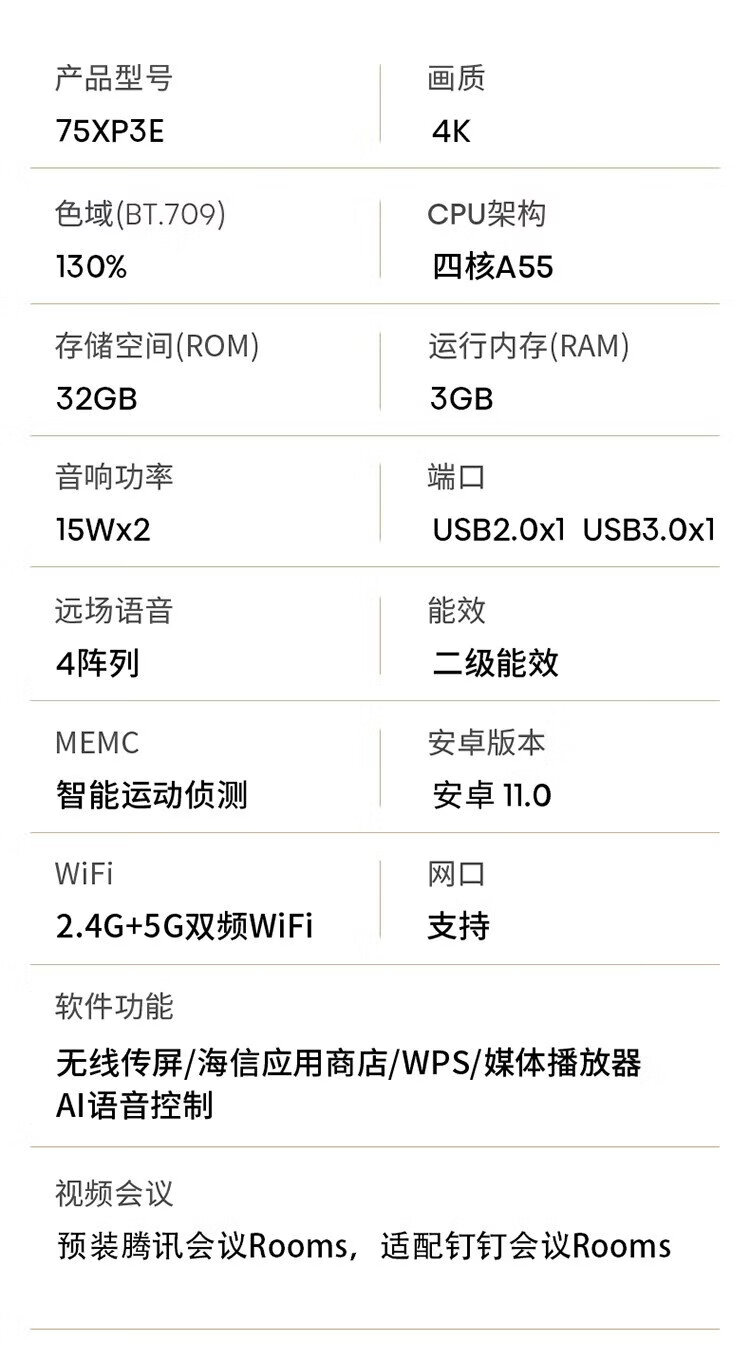 Hisense 75-inch conference flat-panel TV all-in-one 3+32GB wireless projection conference room display 4K office teaching training display 75XP3E delivery and installation all-in-one