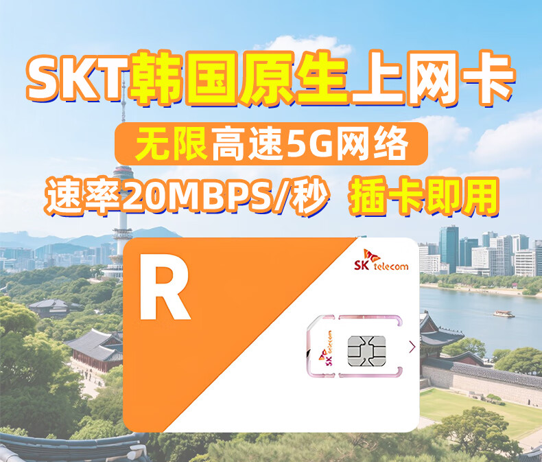 South Korea SKT native phone card 5G network unlimited traffic Internet card 5 days unlimited traffic