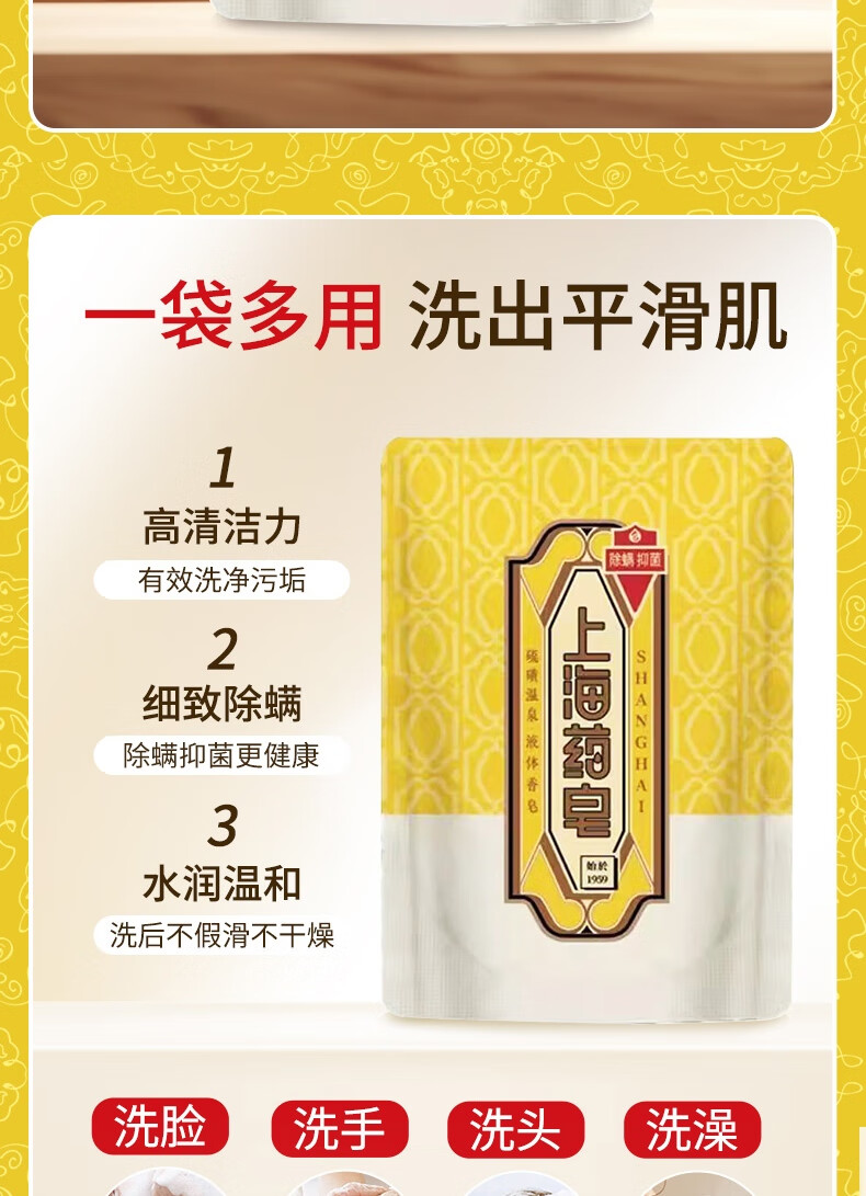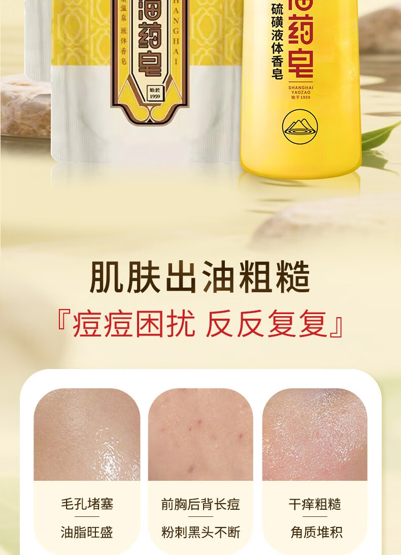 Shanghai medicated soap sulfur bath soap liquid sulfur soap mite removal acne oil control liquid soap men's bath 500g+300g*2