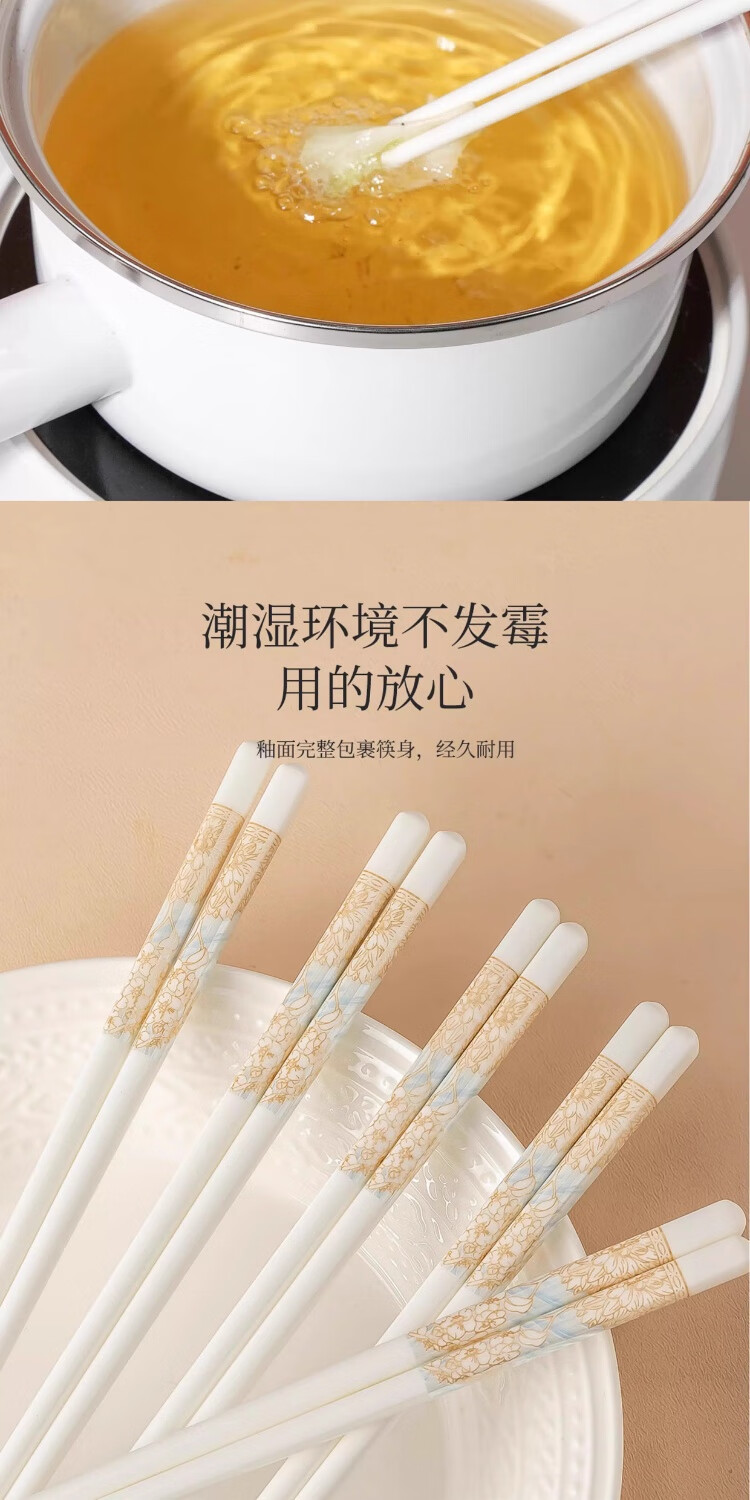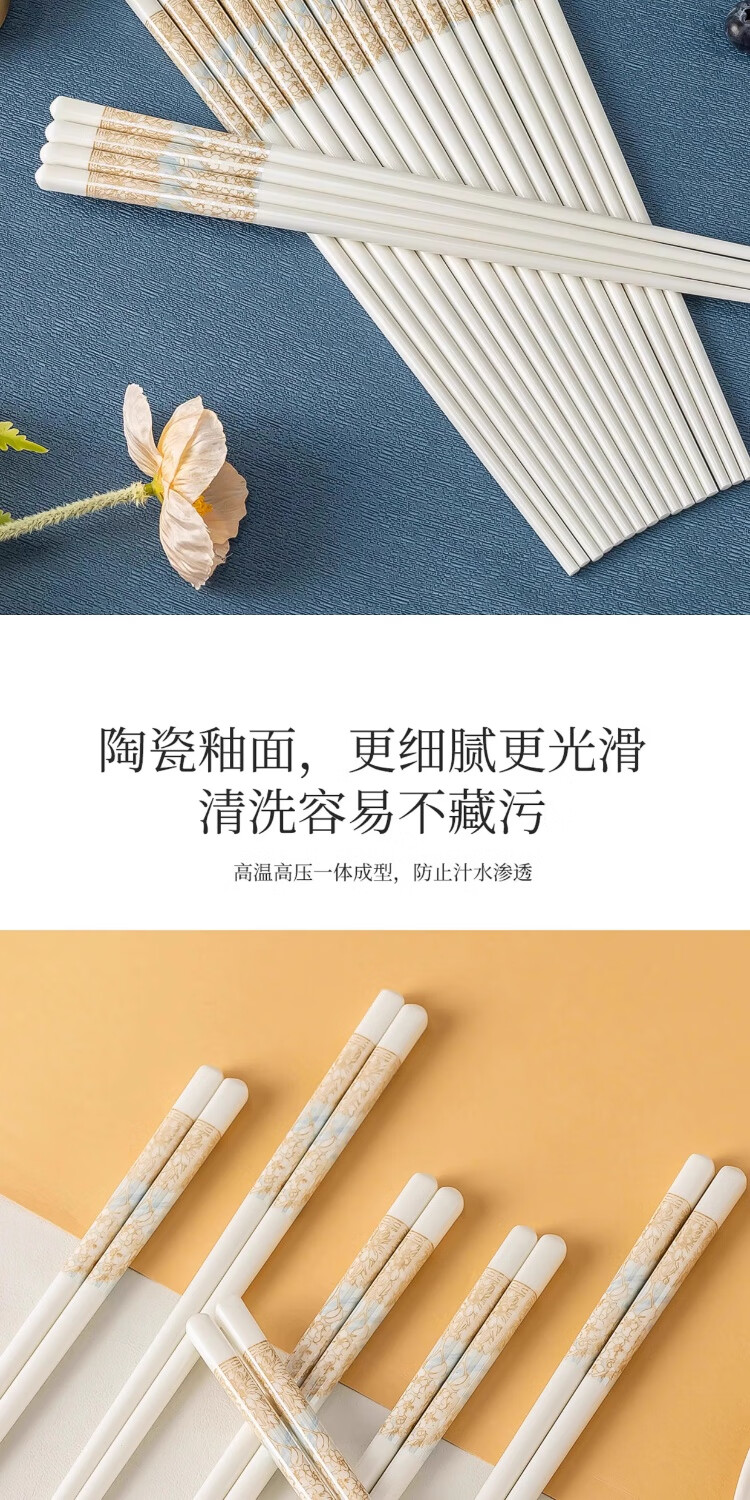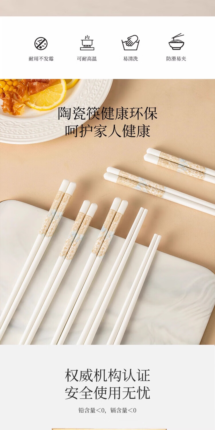PINYU ceramic chopsticks Jingdezhen genuine household high-quality high-end mildew-proof chopsticks antibacterial and high temperature resistant food grade 2025 new style