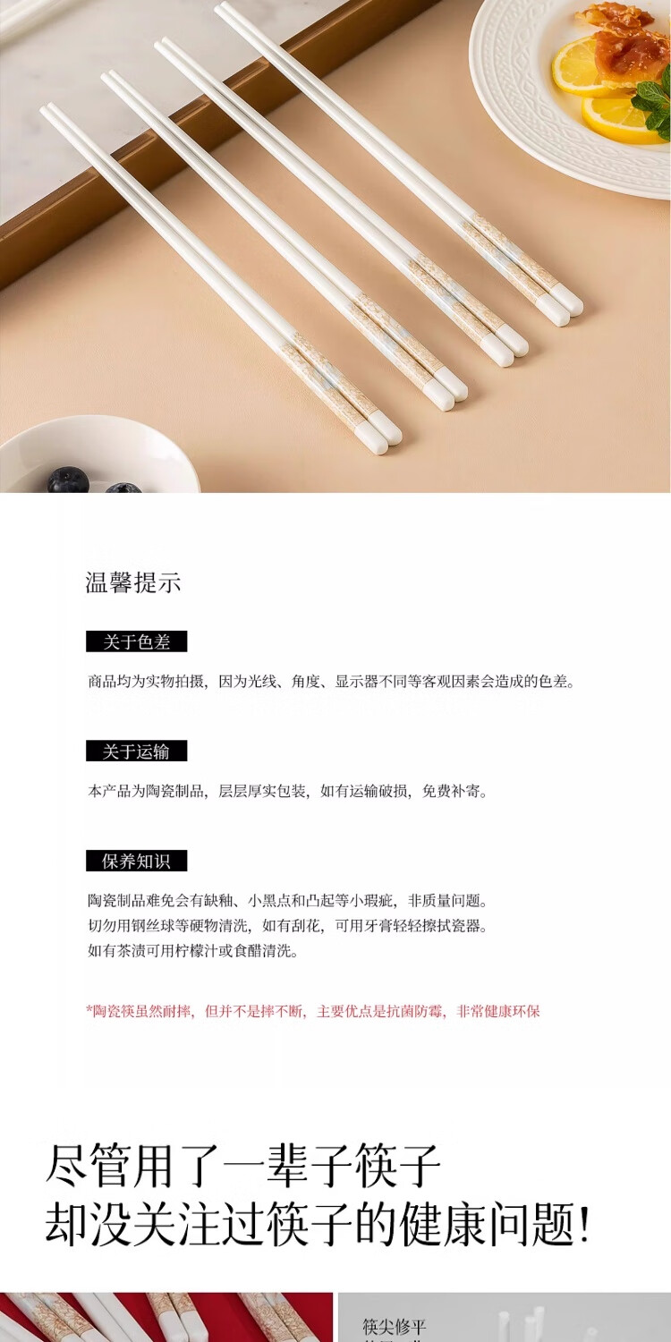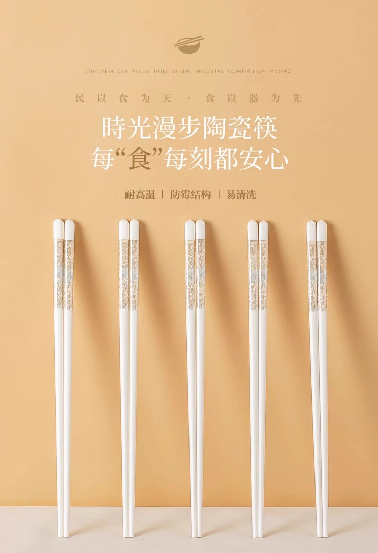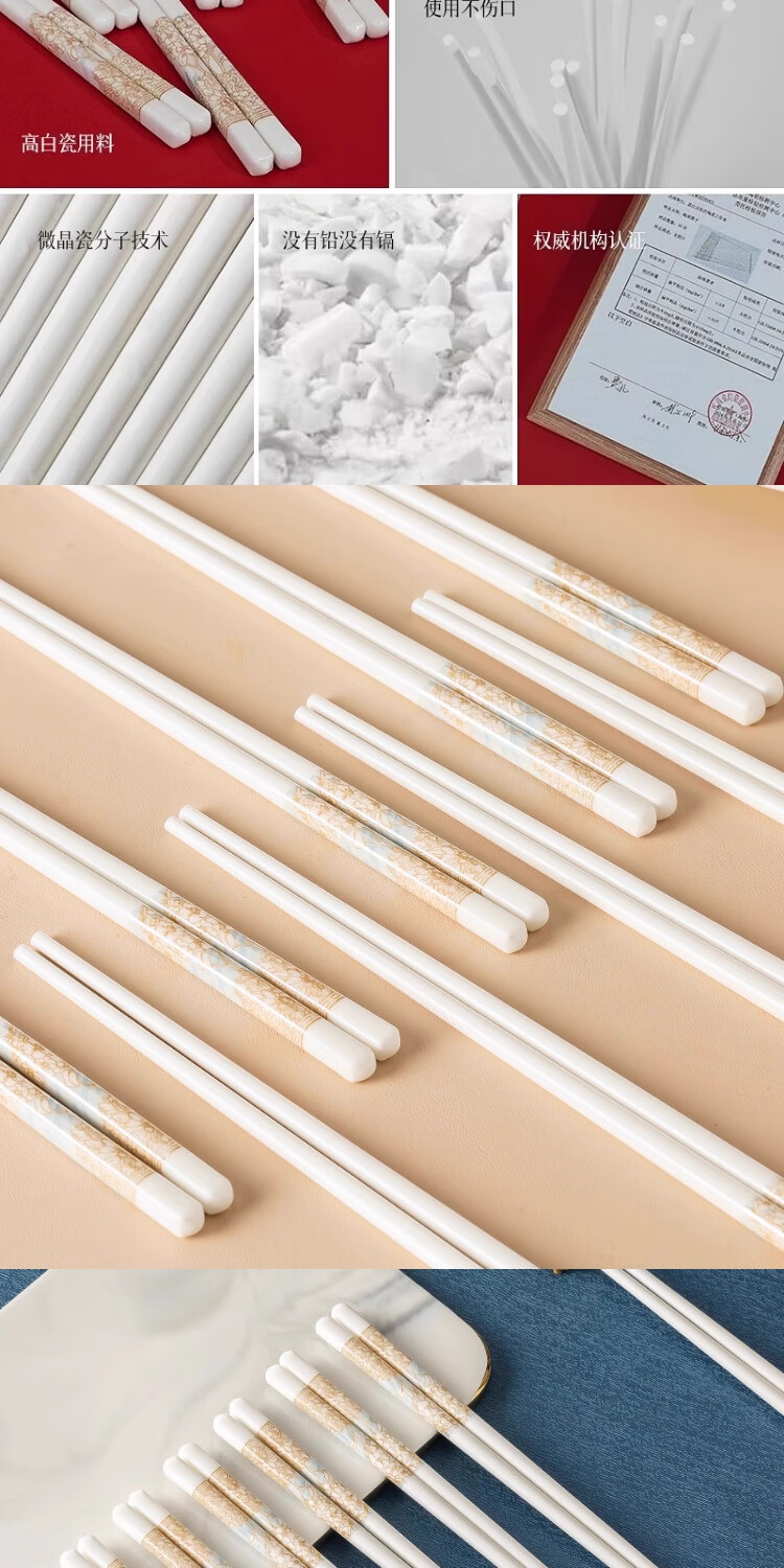 PINYU ceramic chopsticks Jingdezhen genuine household high-quality high-end mildew-proof chopsticks antibacterial and high temperature resistant food grade 2025 new style