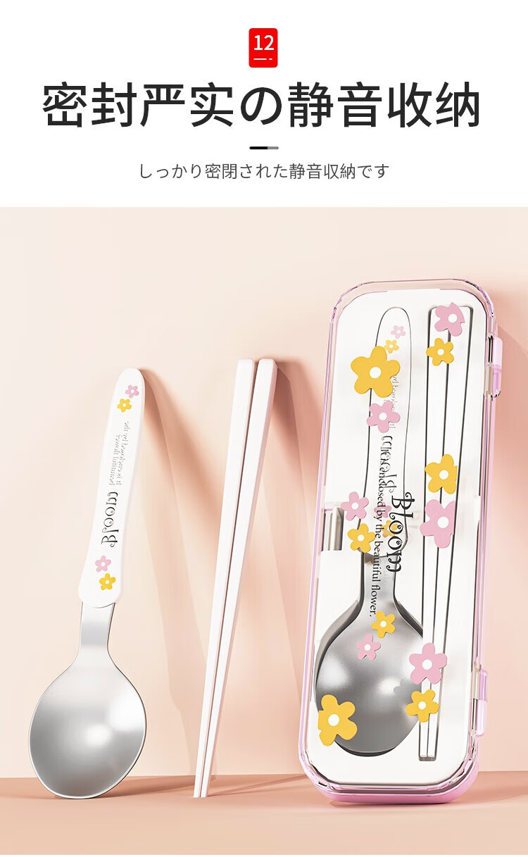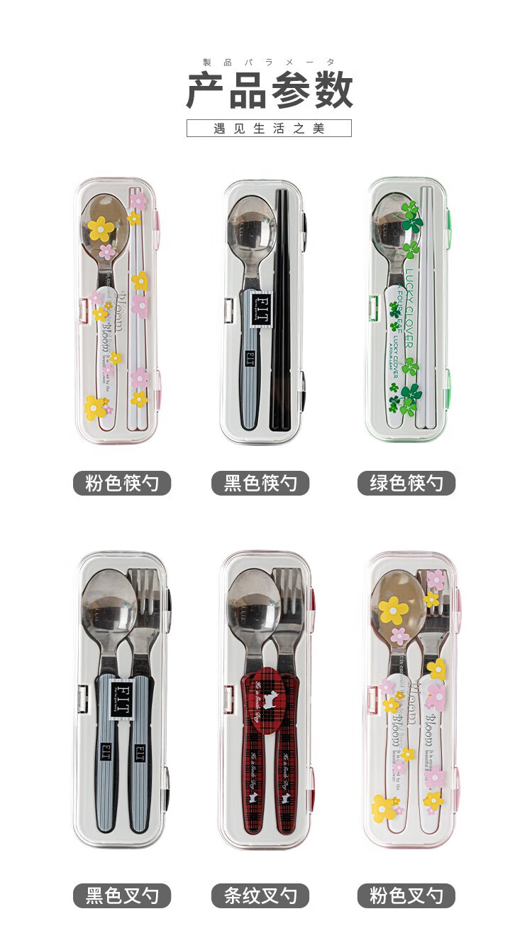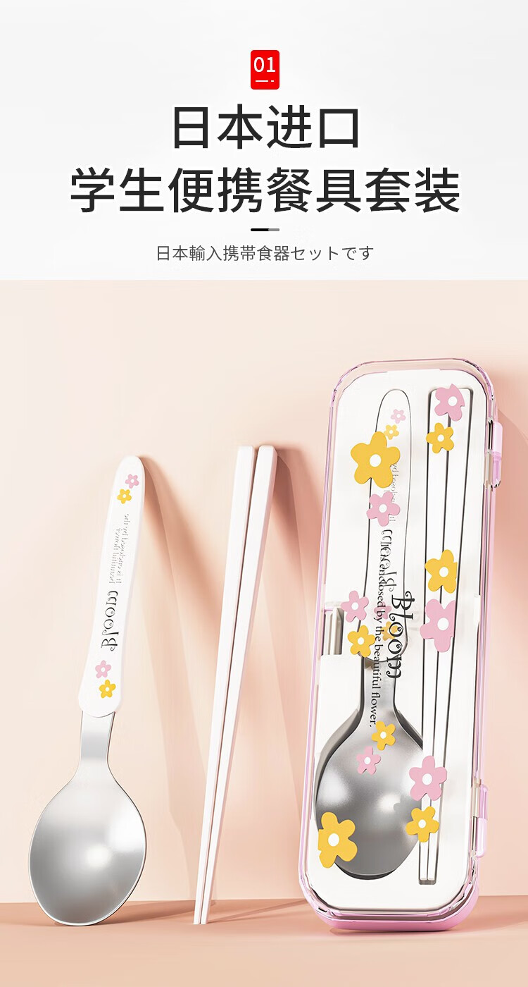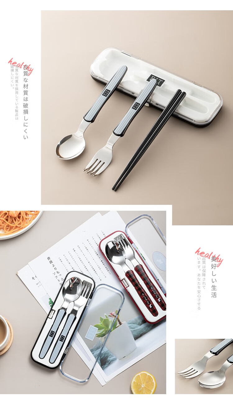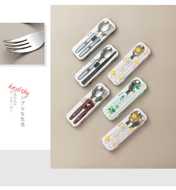 Home KATEI STORY Japanese imported chopsticks and spoons set portable tableware storage box stainless steel takeaway to work students and children chopsticks and spoons