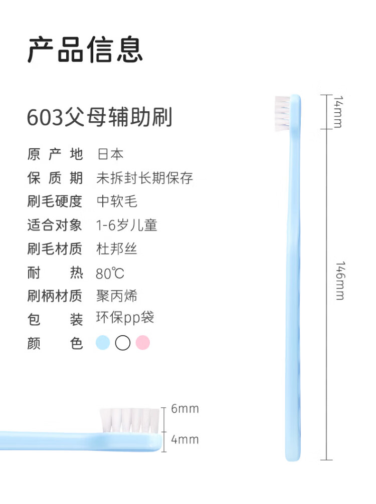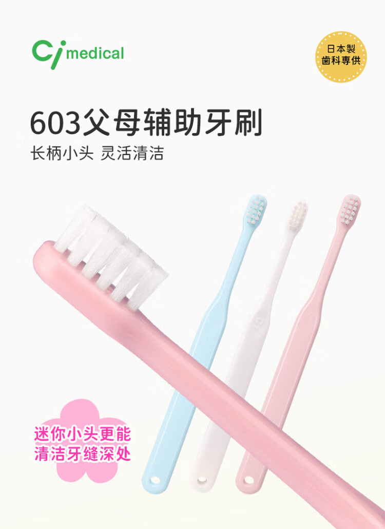 Ci Medical Japan imported parent auxiliary brush 603 teething period children's toothbrush 1-6 years old medium soft bristled flat head toothbrush 1 pack