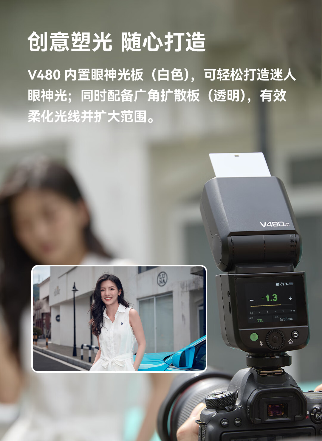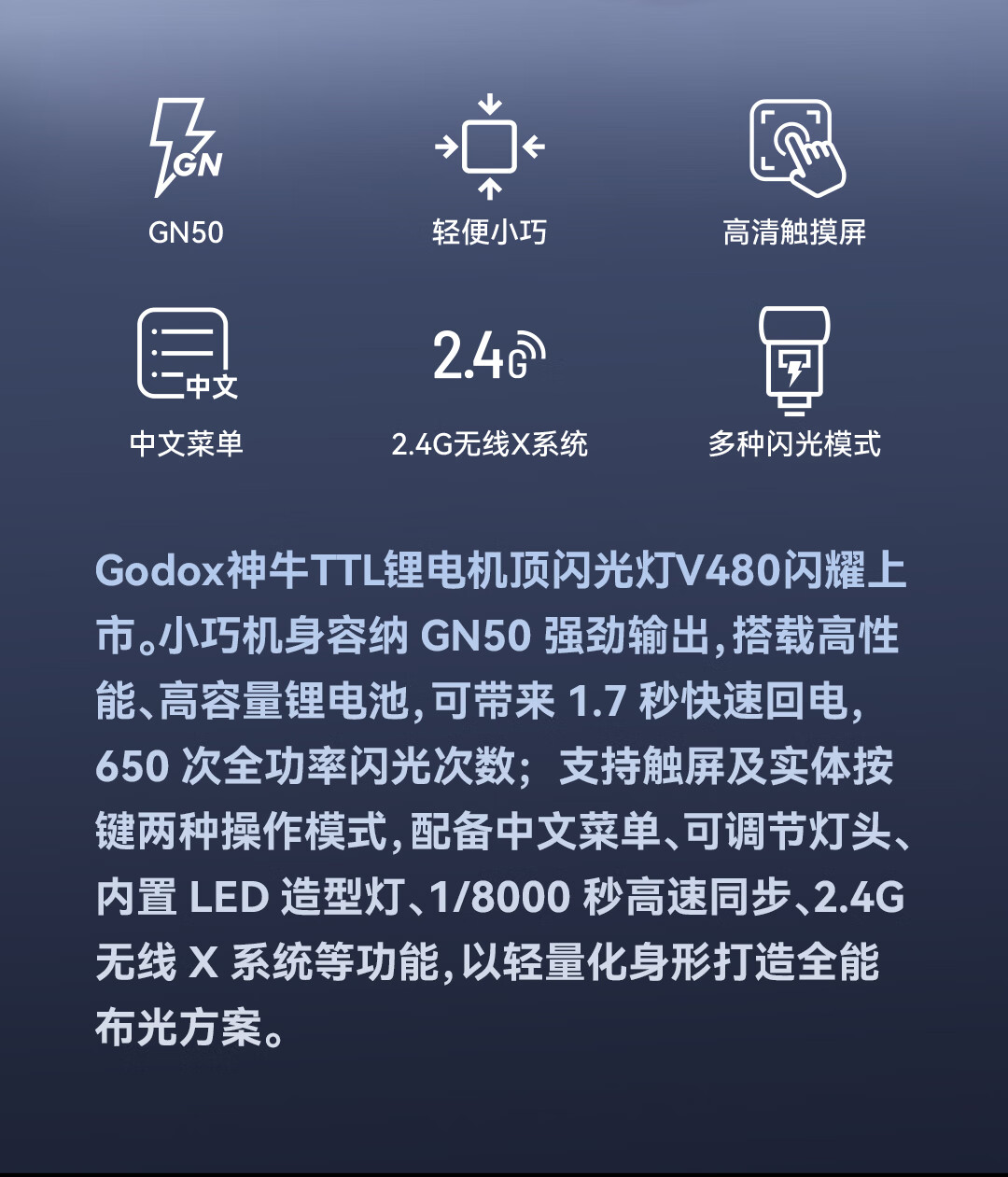 Godox V480 Touch Screen Camera Top Flash High Speed Synchronization TTL Lithium Battery Hot Shoe Light Outdoor Photography Portable Wedding Photography Light Fuji Version