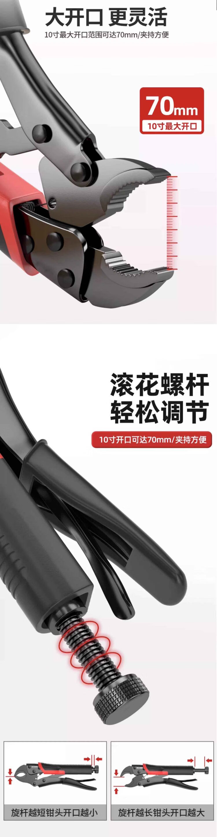 Factory No. 1 10-inch round mouth powerful pliers multi-functional clamp tool universal pressure pliers industrial grade manual fixed universal pliers