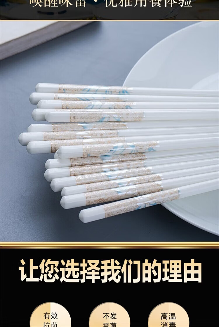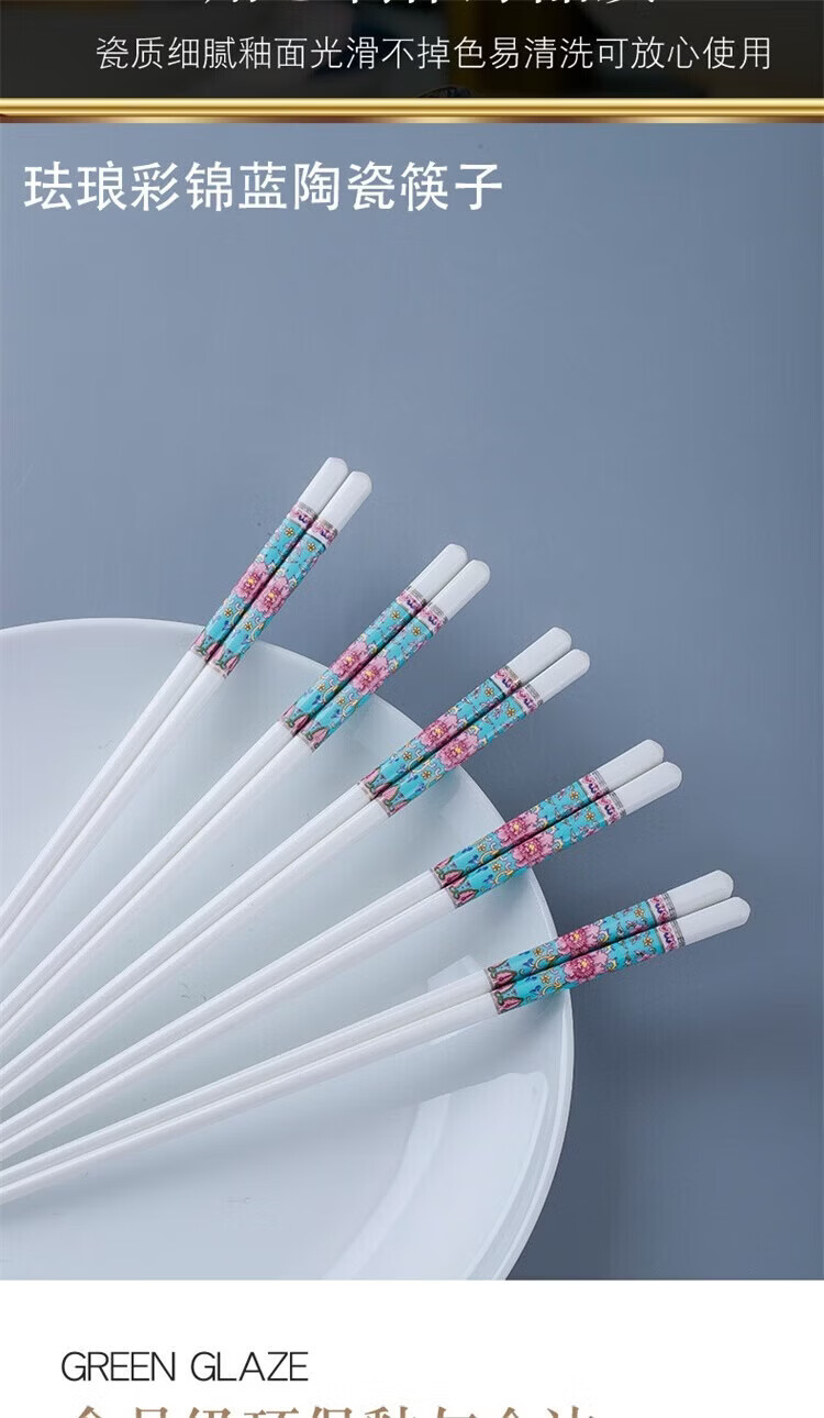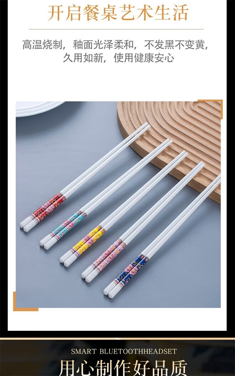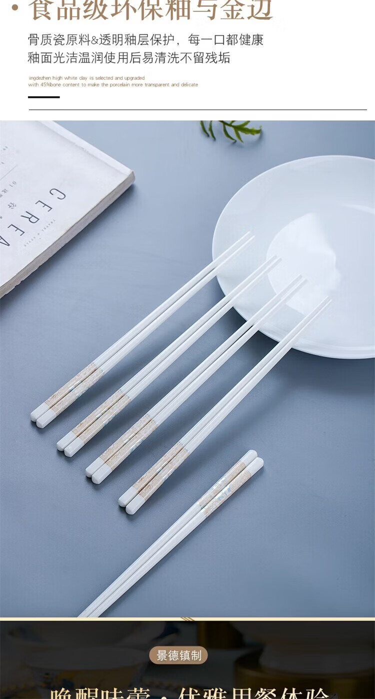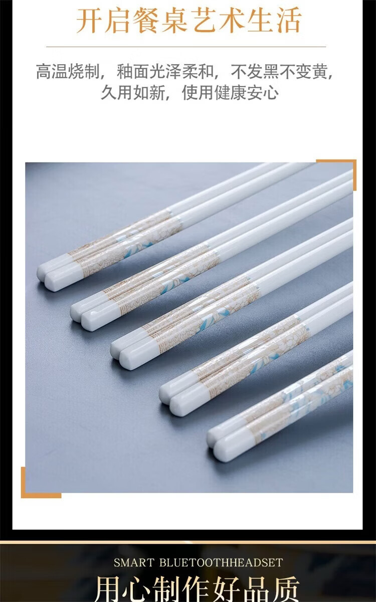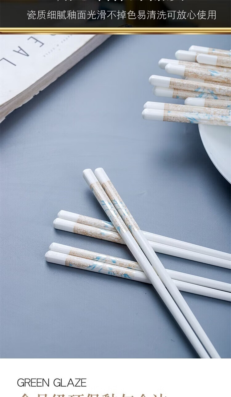 Fuou Jingdezhen Ceramic Chopsticks High-end Healthy and Environmentally Friendly Ceramic Chopsticks Time Walking Ceramic Chopsticks Ten Pairs