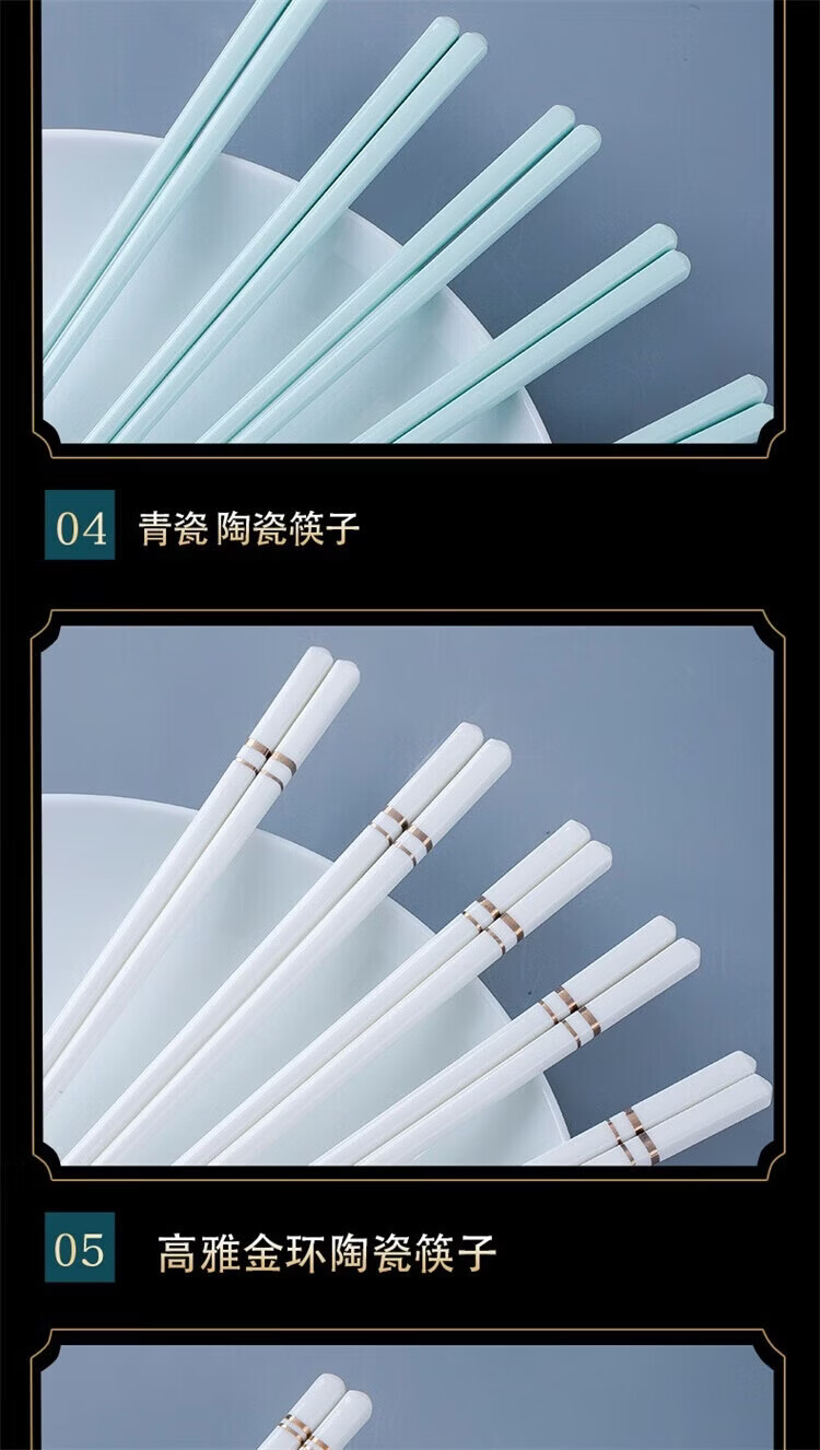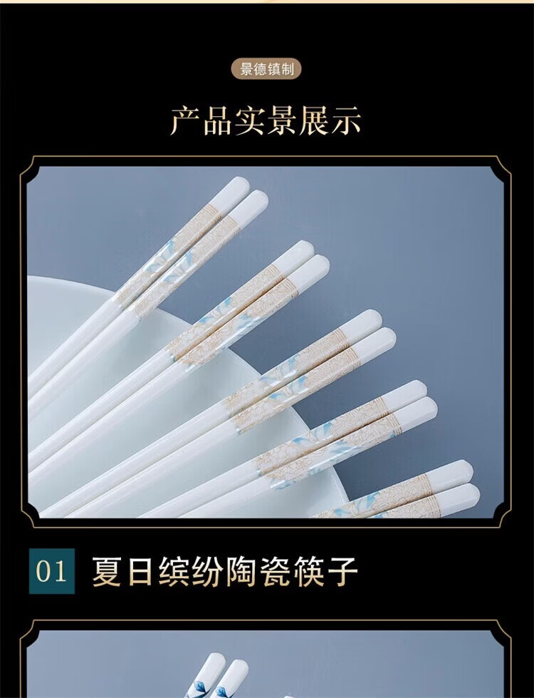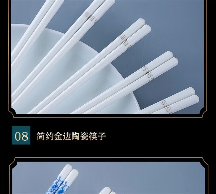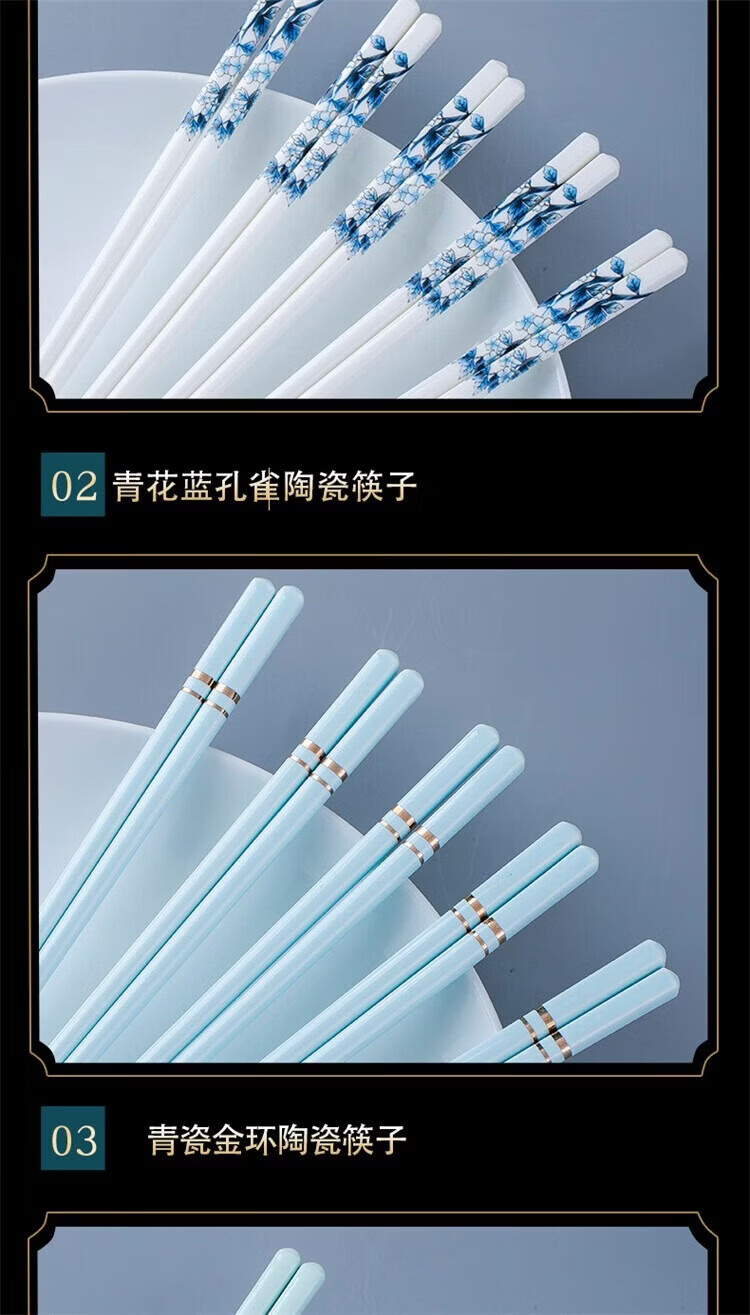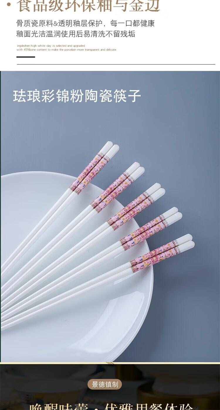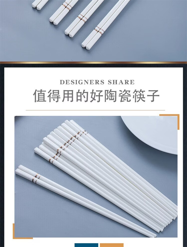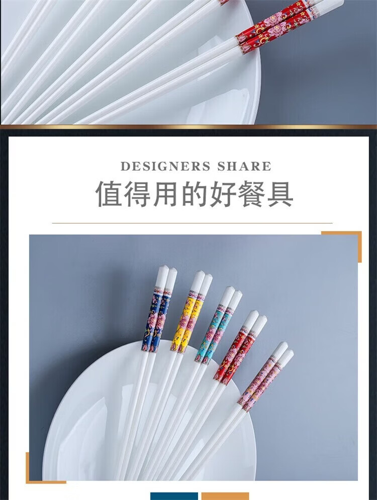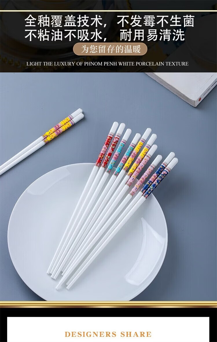 Fuou Jingdezhen Ceramic Chopsticks High-end Healthy and Environmentally Friendly Ceramic Chopsticks Time Walking Ceramic Chopsticks Ten Pairs
